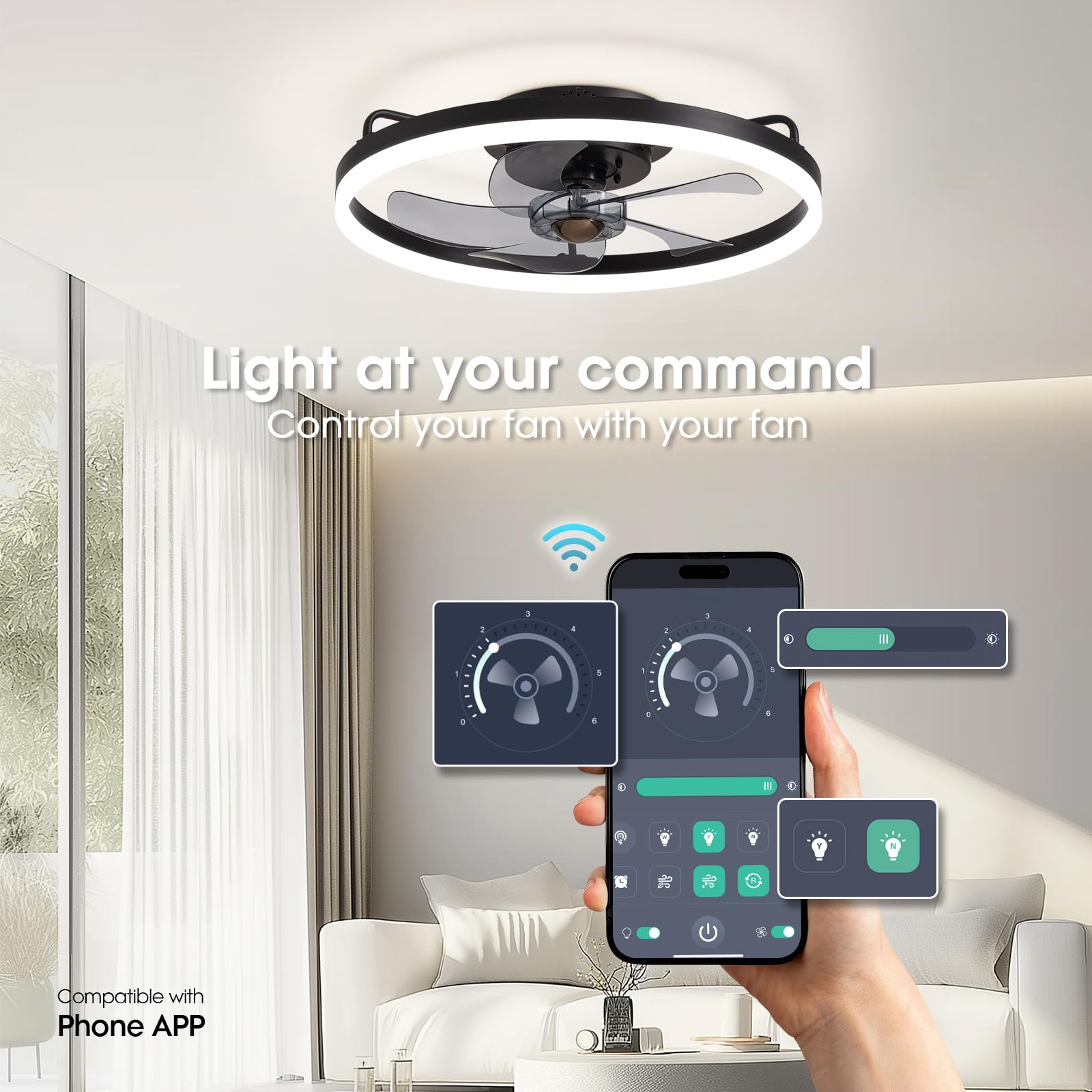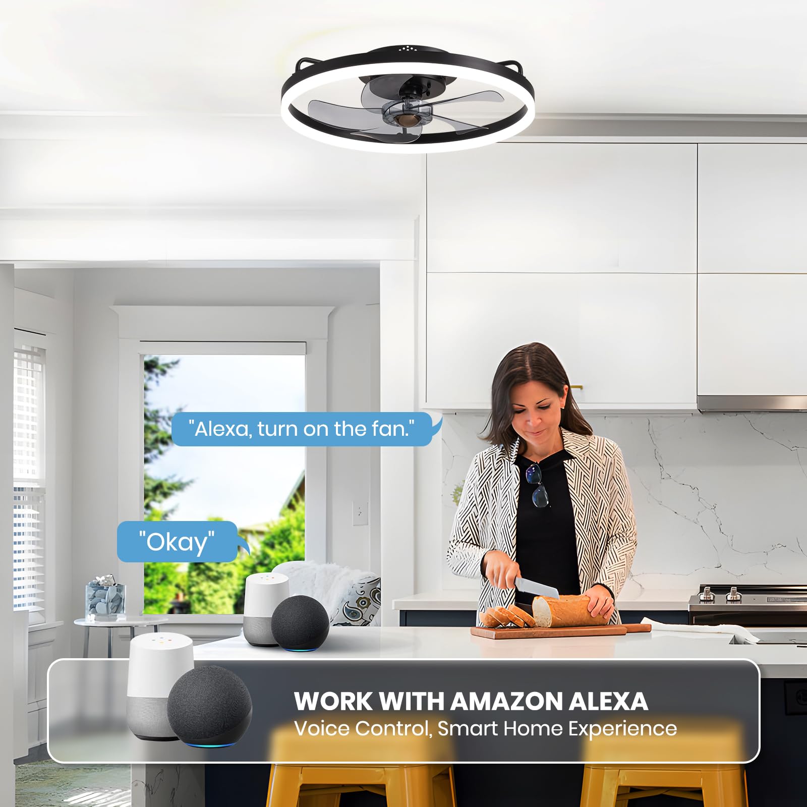 【Smart APP & Voice Control】: Add smart fans light in Tuya Smart App and connect its to Amazon Alexa/Google Assistant account in 2.4Ghz network environment. Using simple voice commands to control flush mount ceiling fans with lights.