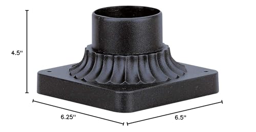 Color Finish: Black. Assembled Height: 4 in. Assembled Length: 6 in. Assembled Width: 6 in. Product Name: Non-Electrical Parts. Material: Aluminum. Color: Black. Light Bulb Base Type: Pier. Color: Black. Application: Prevents Moisture from Entering Lamp Holder. This item is a pedestal mount for post lanterns. It is designed for use with fixtures that fit a 3inch diameter post where you are not going to use the pole and want to mount on a pedestal or other raised surface.