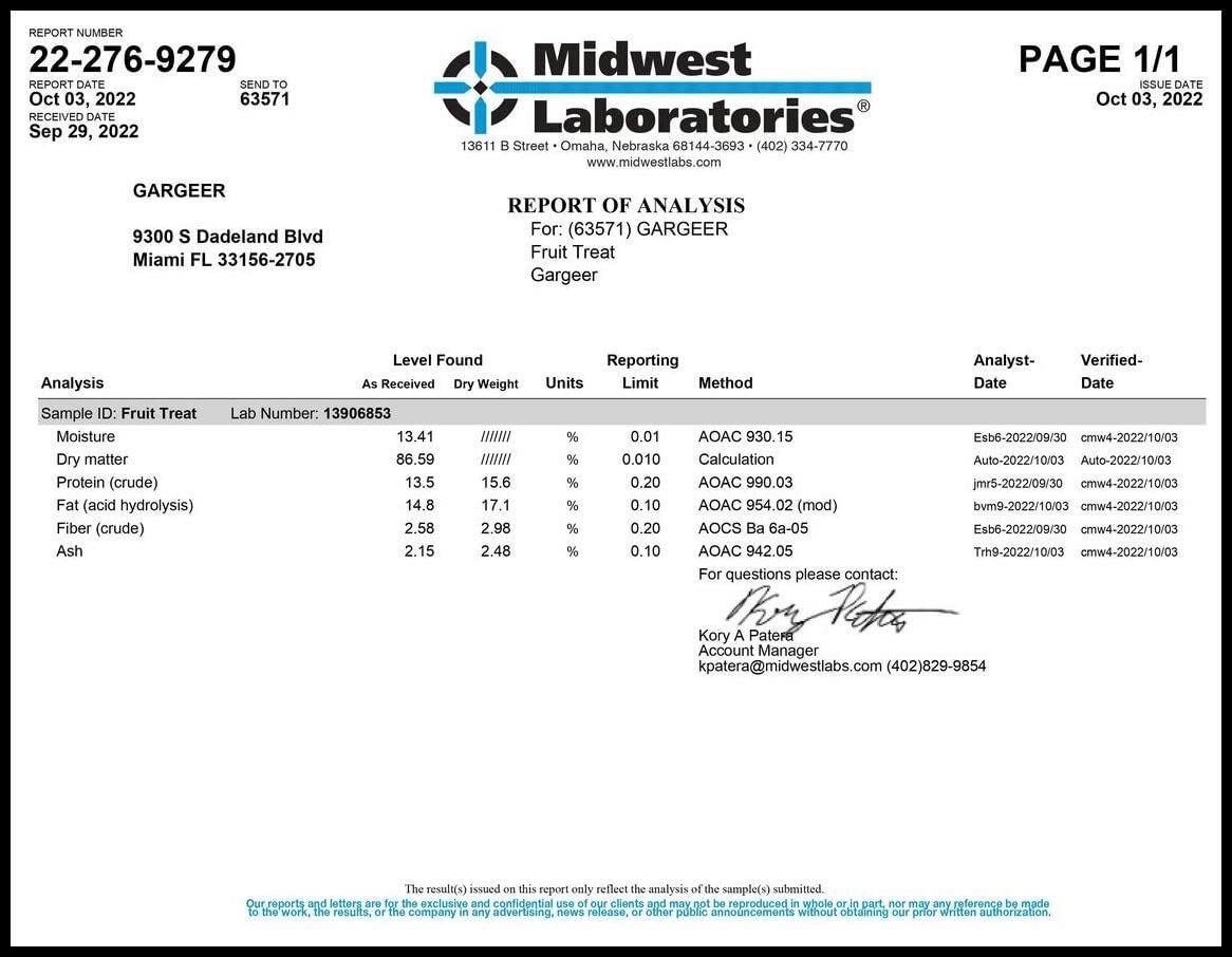 Gargeer’s Hermit Crab Fruit & Nut Treat is a yummy blend of premium ingredients that will meet your hermit crab’s nutritional needs while providing a sweet variety of fruits and nuts. Premium ingredients include non-GMO rolled oats, steam flaked corn, and steam rolled barley. We also include peanuts, walnuts, pistachios, almonds, hazelnuts, and raisins that your hermit crabs will love devouring. Additionally, we included real fruit powders such as mango, coconut, papaya, and banana. Our Fruit & Nut Treat formula will entice even the pickiest hermit crabs while providing essential vitamins and minerals for overall health.