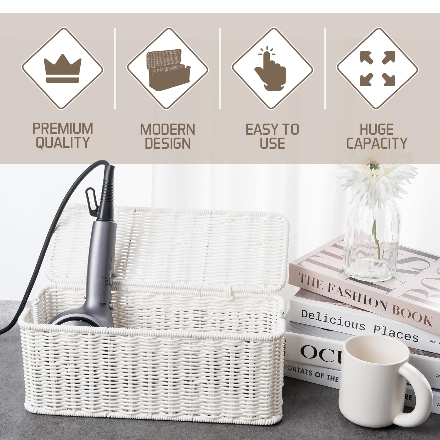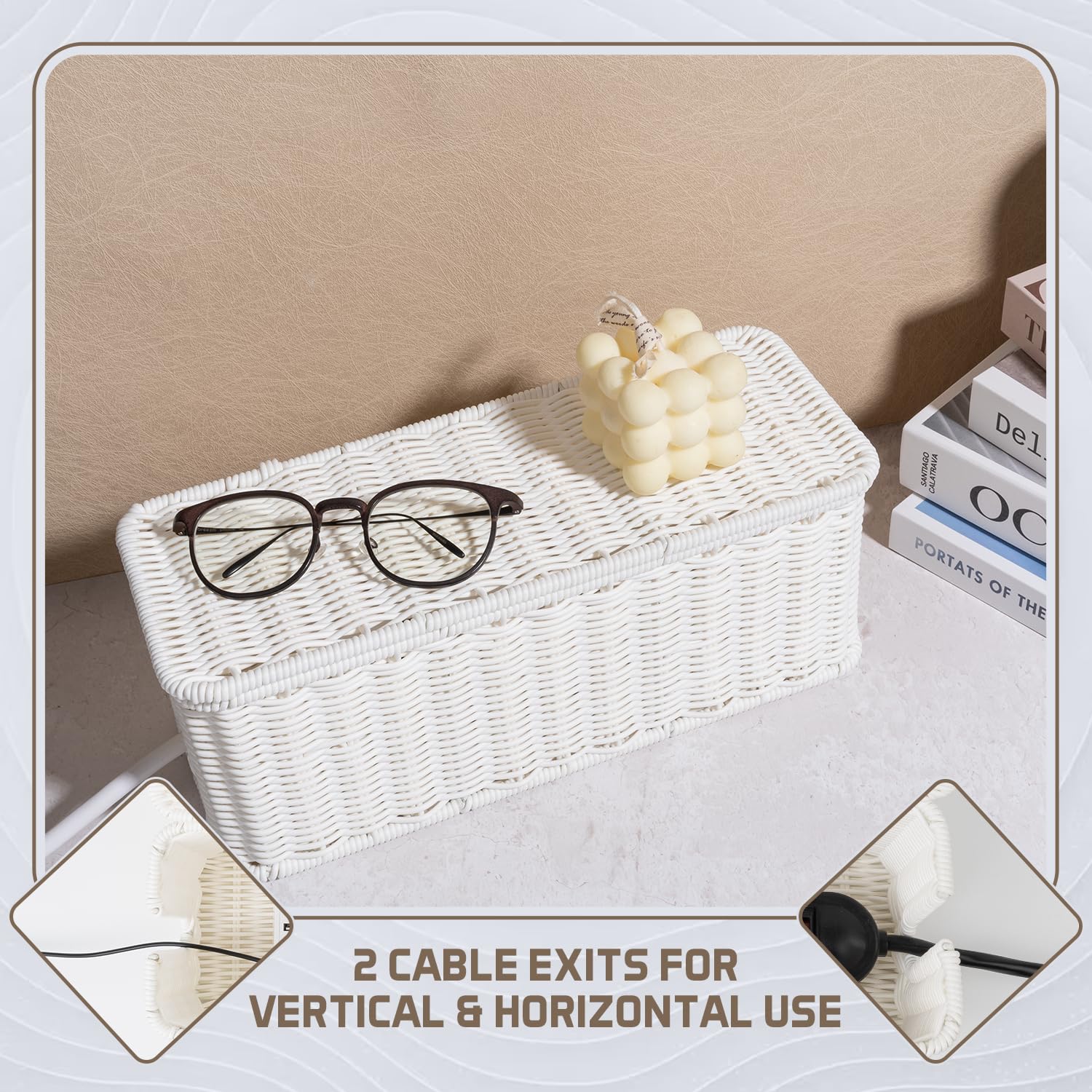 Elegant & Safe Handwoven Synthetic Rattan: Our Cantalop Cord storage organizer with attached lid boasts a handmade polypropylene rattan like plastic, adding a touch of rustic elegance to any room. This cable organizer is carefully designed to hide wires and improve your space with a charming touch.