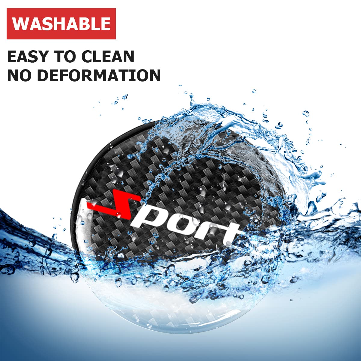 Beautiful Appearance: Carbon fiber texture is clear, appearing to be more advanced inside the car, beautiful and neat. Three colors, two styles, one style with Sports font printed on it, with a strong sports style. With this coaster, your car interior will be upgraded and will look more cool and stylish.