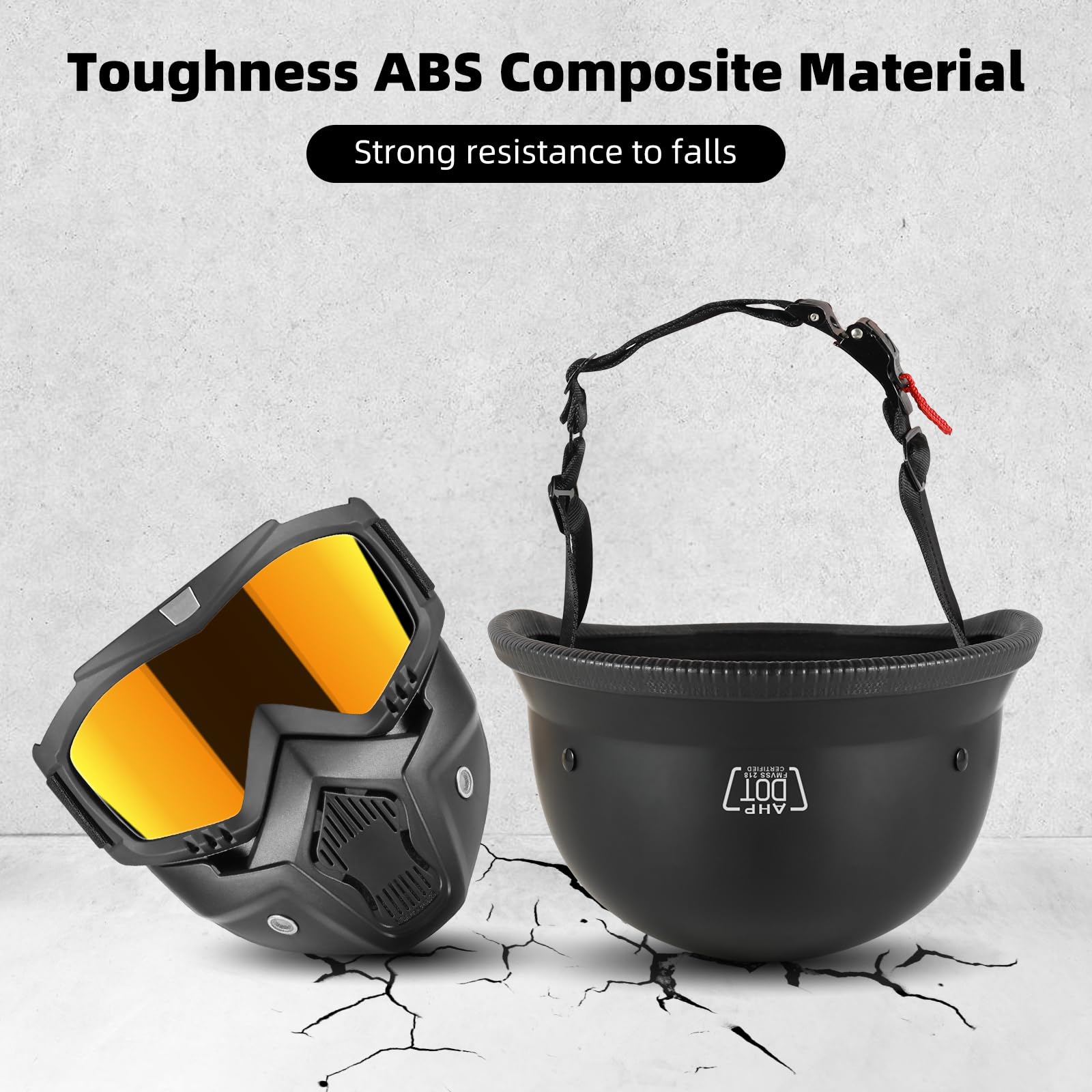 Beautiful and Durable: Crafted with attention to detail, this skull cap half helmet boasts a beautiful finish that adds a touch of elegance to your riding gear. The high-quality ABS materials used in its construction ensure durability, providing long-lasting protection and style for your motorcycle adventures.