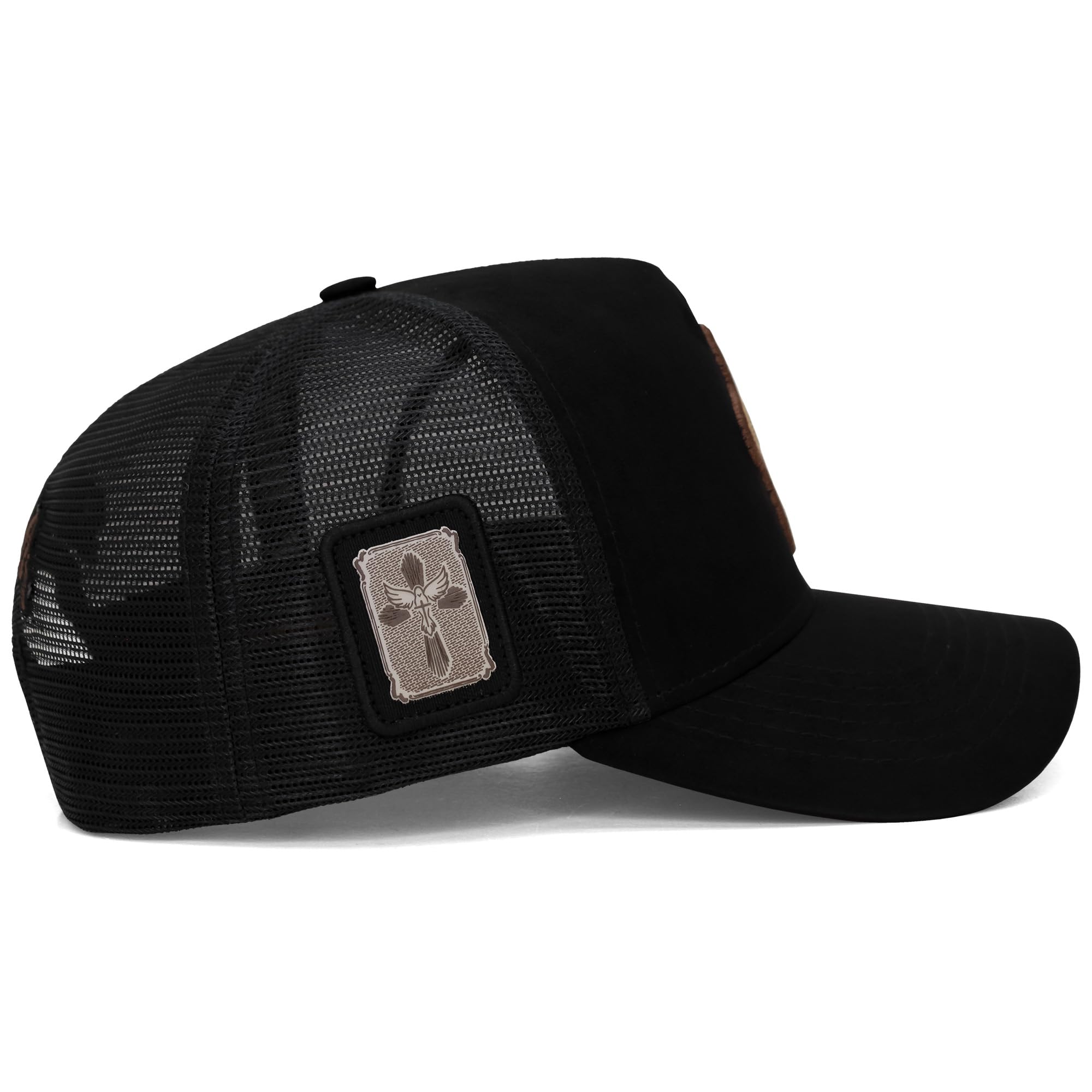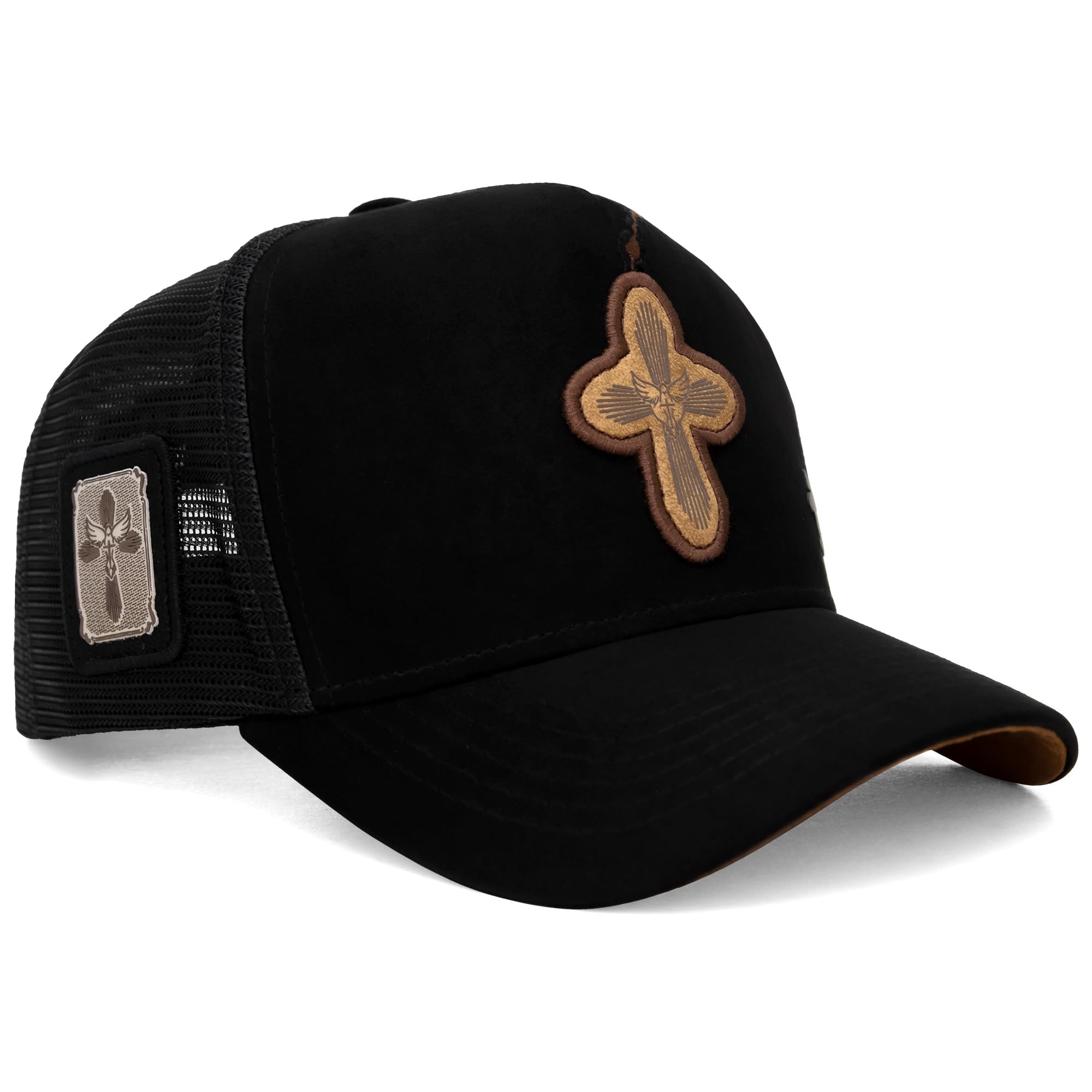 Sacudido's | Trucker Cap Cross Rosary | Snapback Hats, Adjustable, Unisex, Faith (US, Alpha, One Size, Black)