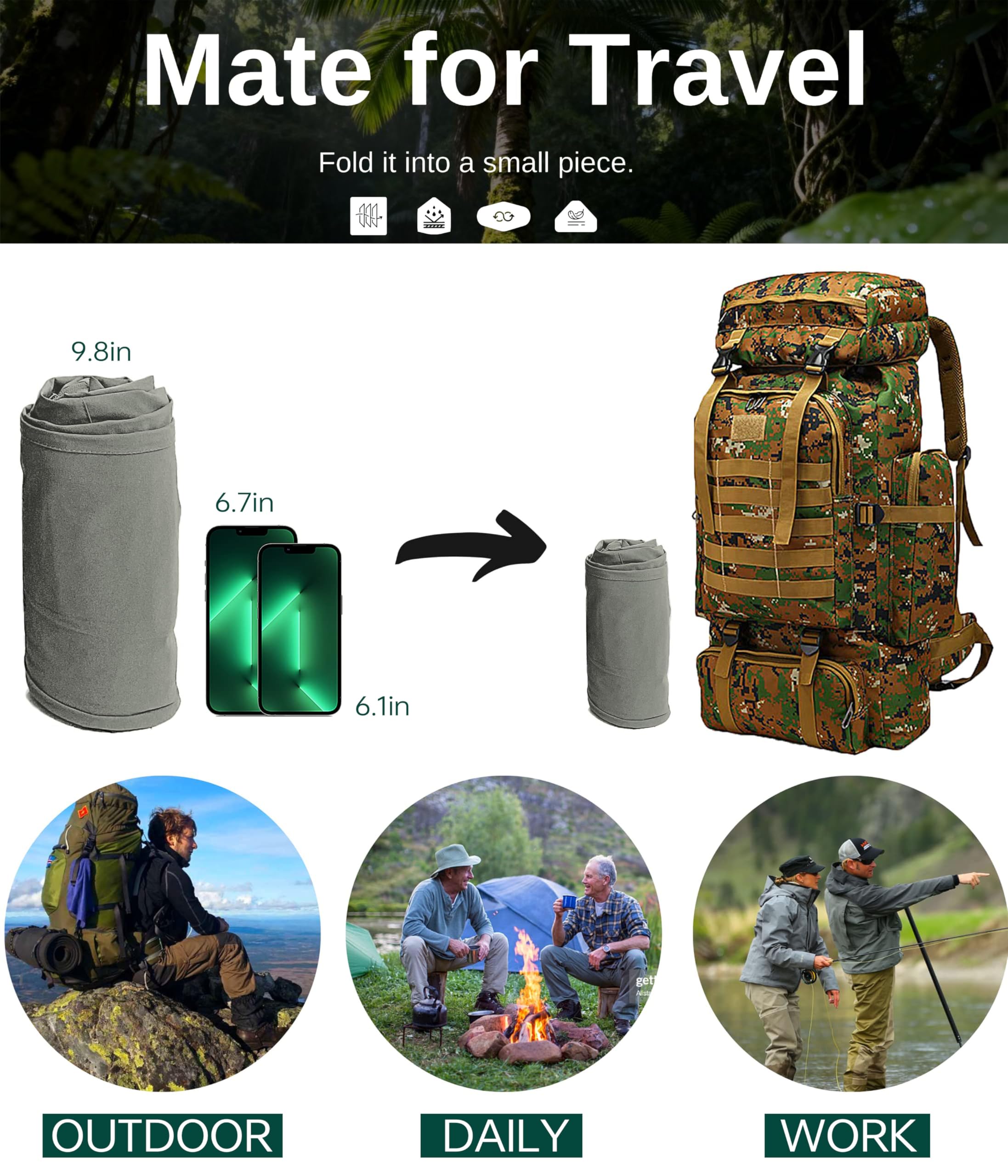 【Easily-Fold & Portable】Our hiking pants men is made with ultra-light air feel fabric, which is a pair of relaxed fit and super light mens hiking pants. NATUVENIX hiking pants men can be your travel mate, because these mens travel pants can be folded into a small piece to be carried