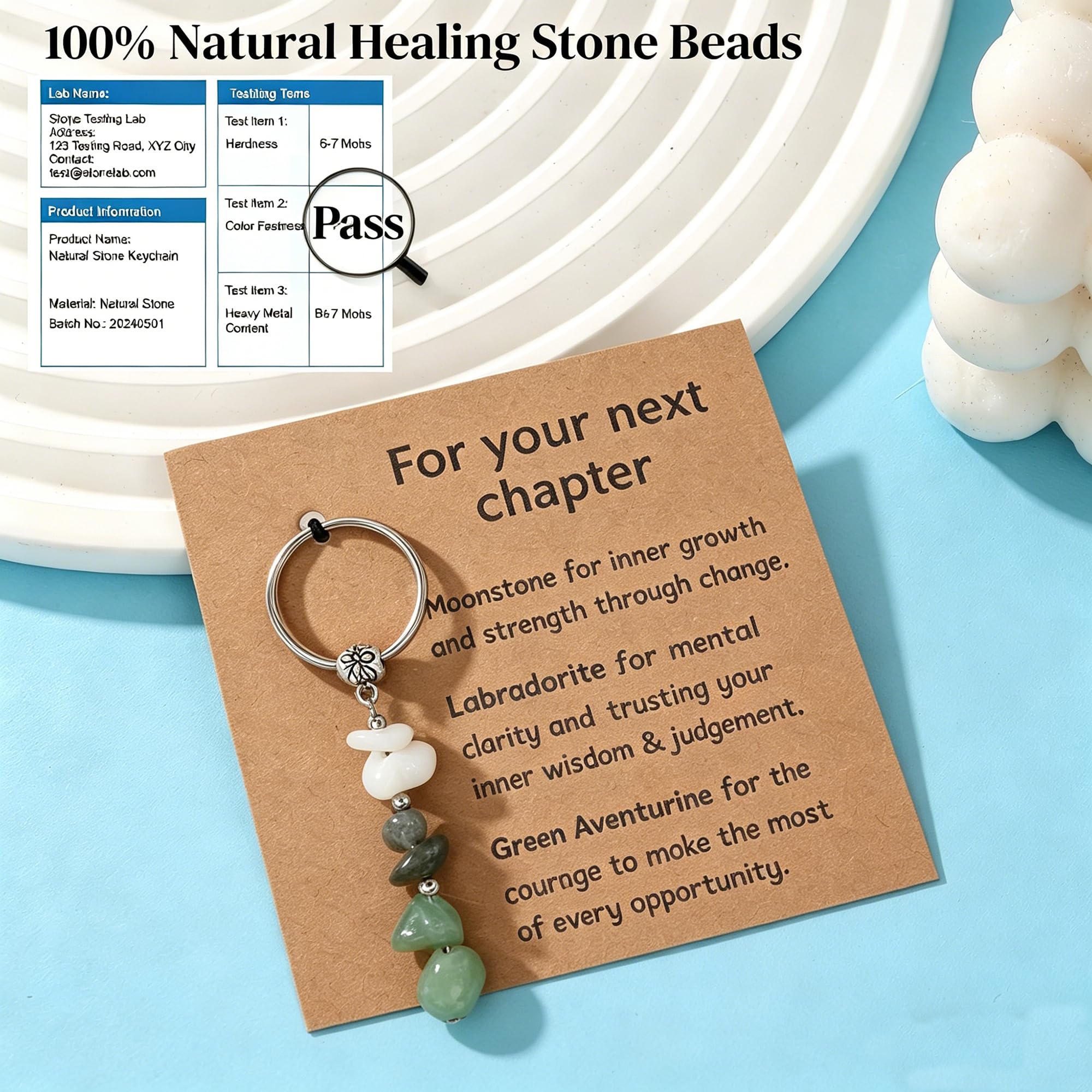 PERFECT GIFT--Whether it's your friend, coworker or family member: with a new beginning, in anxiety, in despair or if you just wish him good luck. You can give him this natural crystal healing stone keychain to bring him strength, good luck and your best wishes. (Perfect new home gift, housewarming gift, promotion gift, congratulations gift, thoughtful surgical recovery gift for a woman, last-minute birthday gift, New Year's gift for a woman, gift for a fresh start, graduation gift for her)