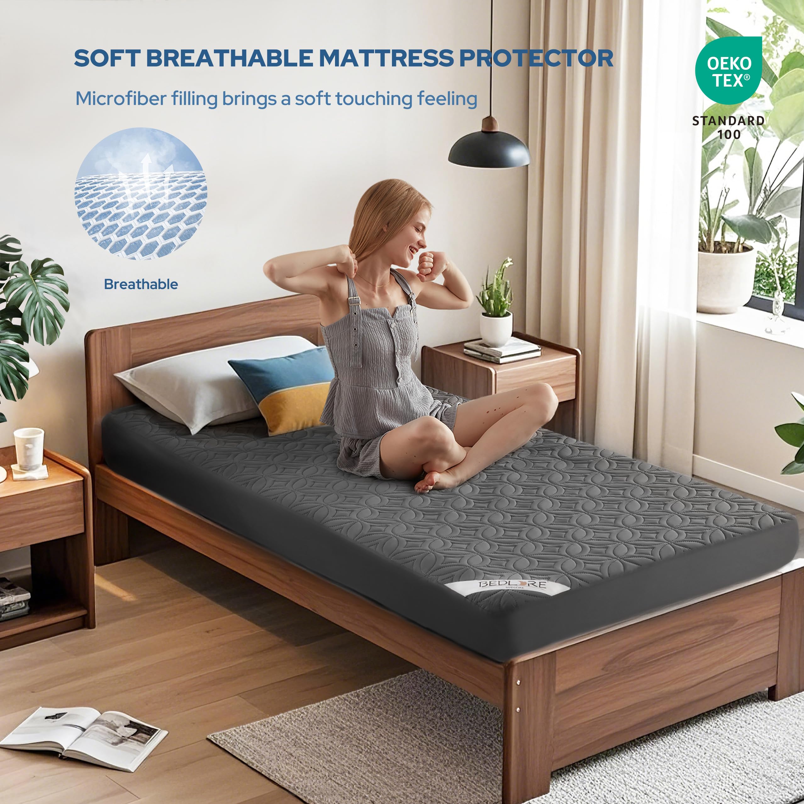 Ultra-Soft & Noiseless: Experience luxuriously soft, breathable comfort. The noiseless twin xl mattress protector fabric ensures peaceful sleep, even when you move