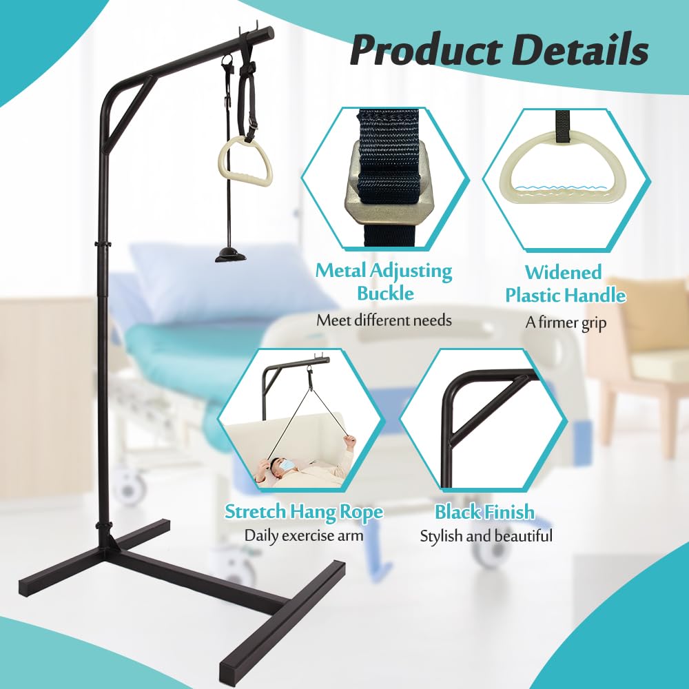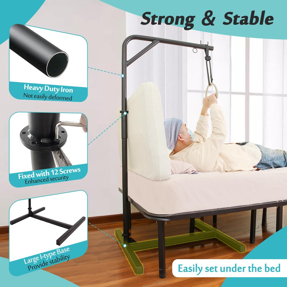 【Wide Application】Hospital trapeze bar with floor type design, easy to set under most of hospital, medical beds, ordinary beds, chairs and couch. It is the first choice for the elderly and patients with mobility difficulties.nd patients with mobility difficulties.