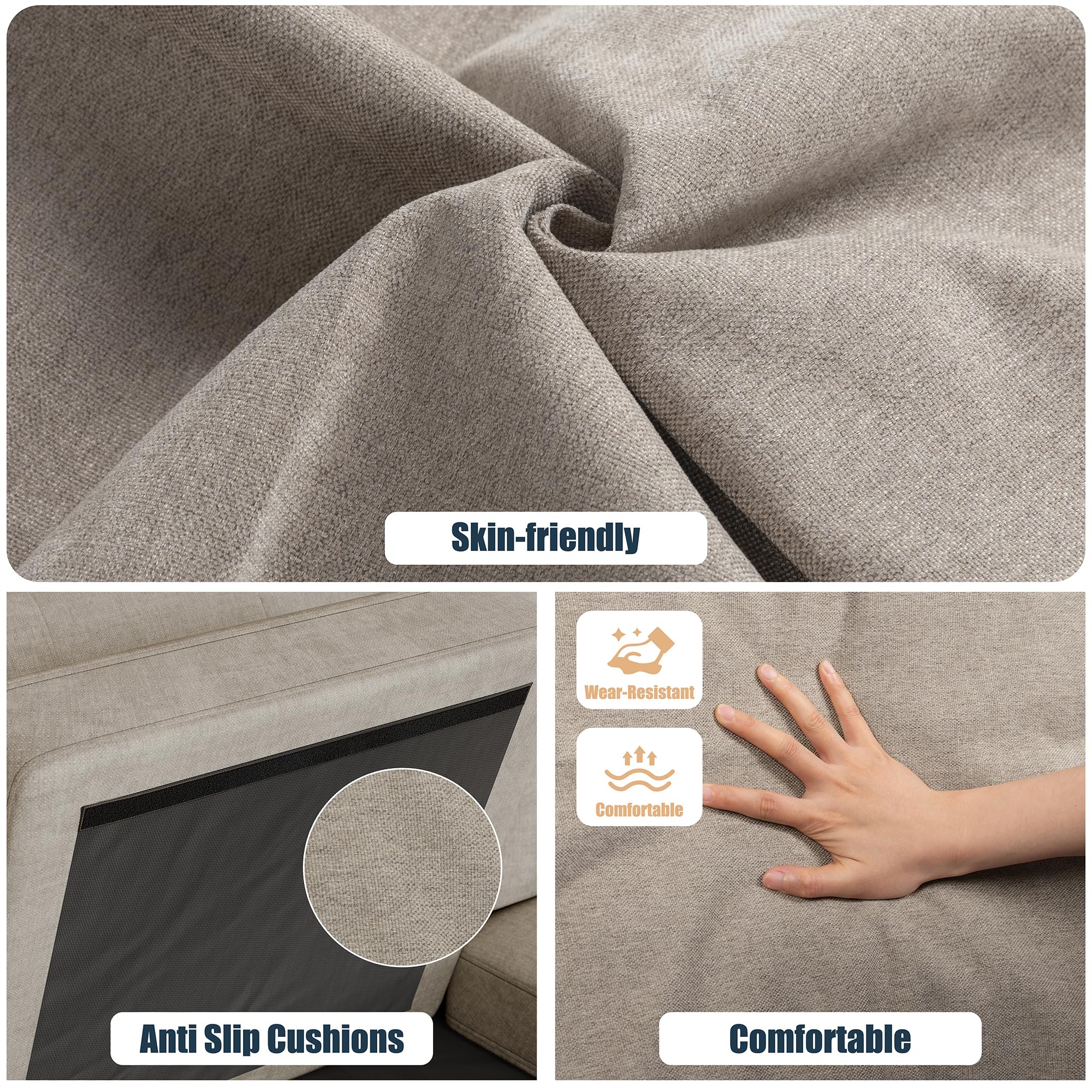 [COMFORTABLE COUCH] All cushions are shipped in vacuum packaging, please wait for a period of time to fill up. About 6.3 in depth seat cushions are soft but also supportive with high-density foam padding inside. No matter sitting or lying, this couch will be your satisfying choice
