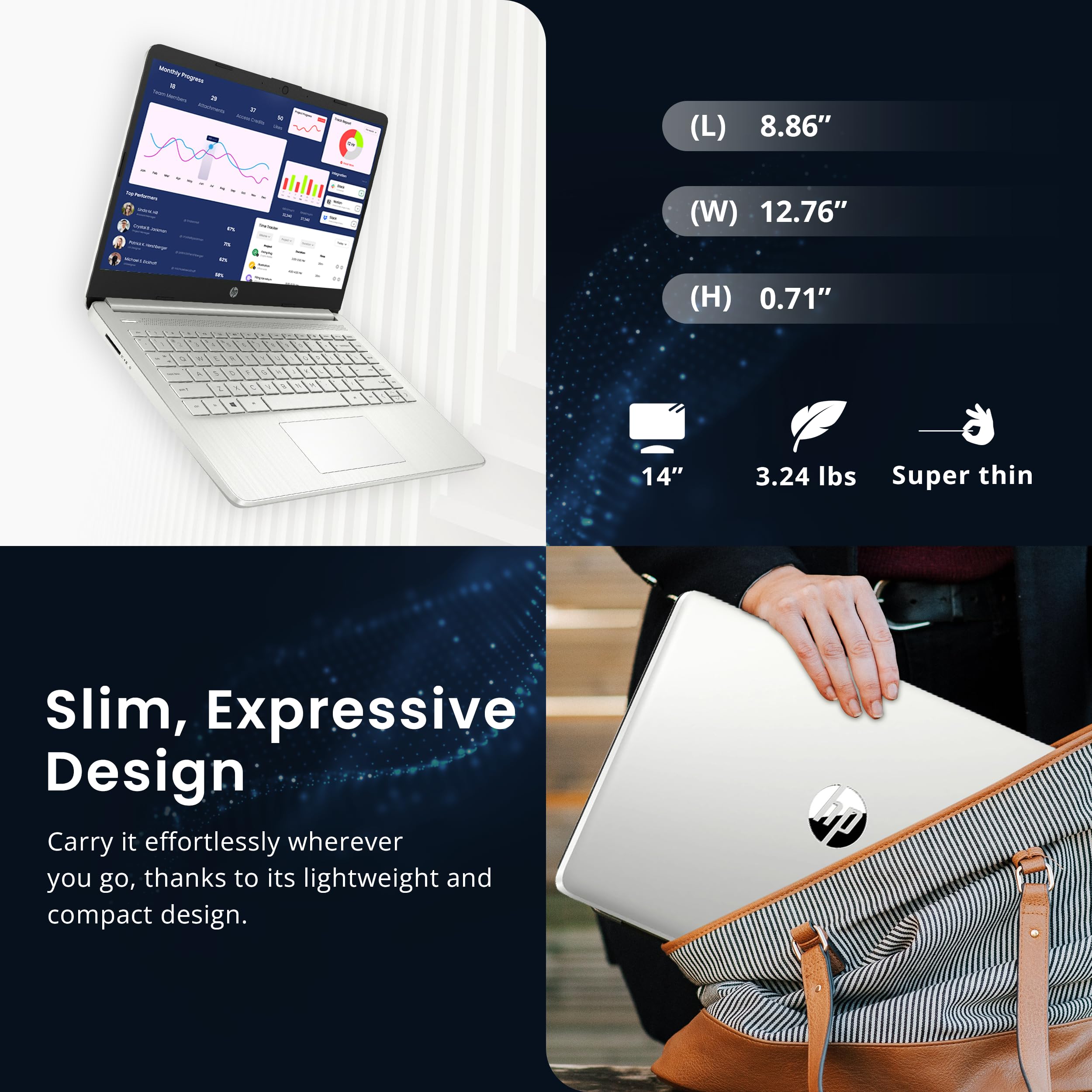 【14" HD Display】Enjoy participating in more relaxing activities while immersing yourself in the amazing clarity and brightness of this display, which is certain to enhance your experiences in particular.【Intel UHD Graphics】Experience reliable graphics performance, delivering smooth visuals for everyday computing tasks and multimedia consumption on our laptops.【HP True Vision HD Camera】Stay connected with the built-in webcam for clear video calls and snapshots.