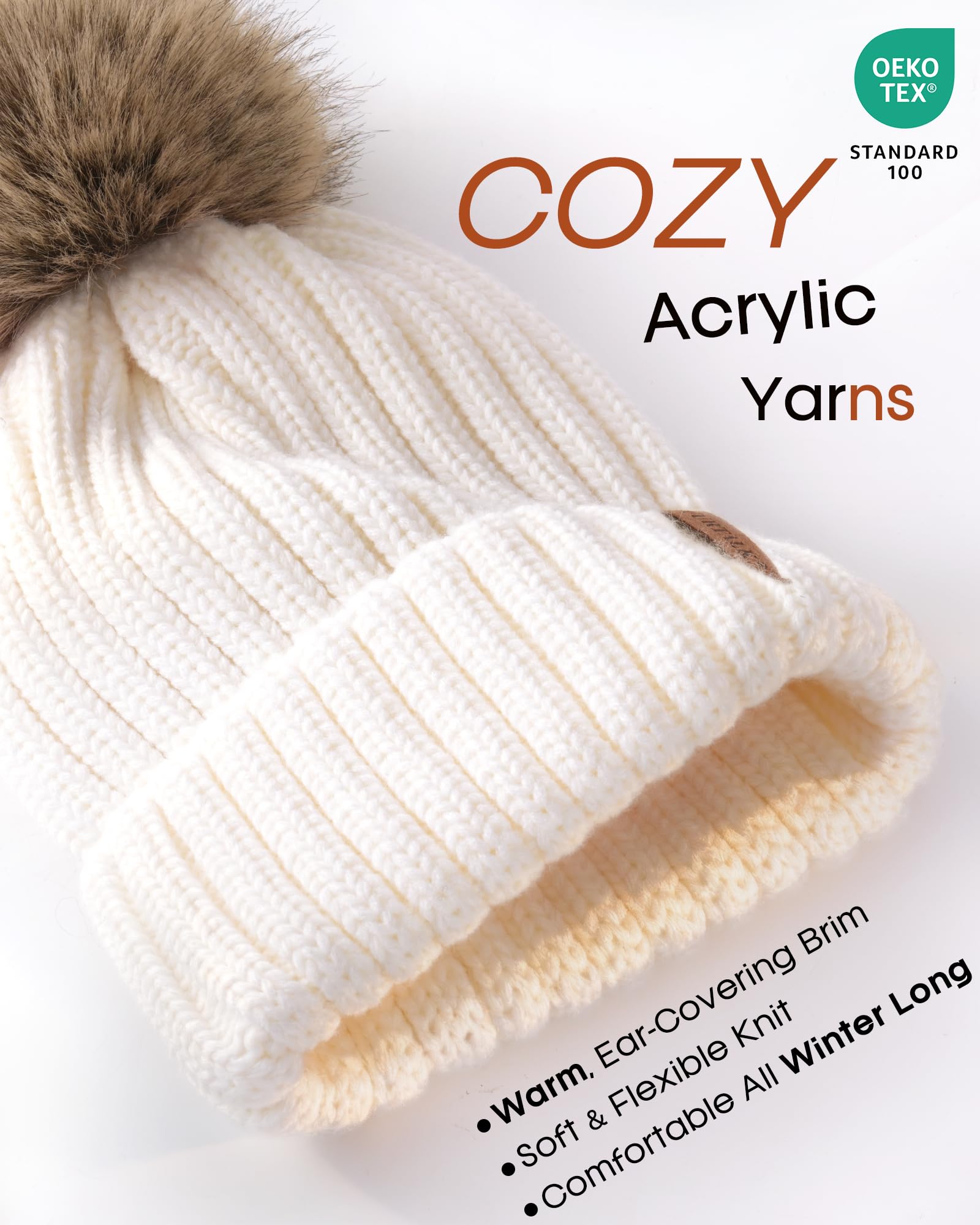 Simple Style: You can wear the winter hat when you dress up casual and youth style outfit, or can be used as ski cap; Pair them with simple jeans, skirts or shirts and you're all set for the day; Knit hat covers your ears comfortably;You need't worry about your ears in winter; Copper buckle at the top of the hat so the pom pom could be removed easily;