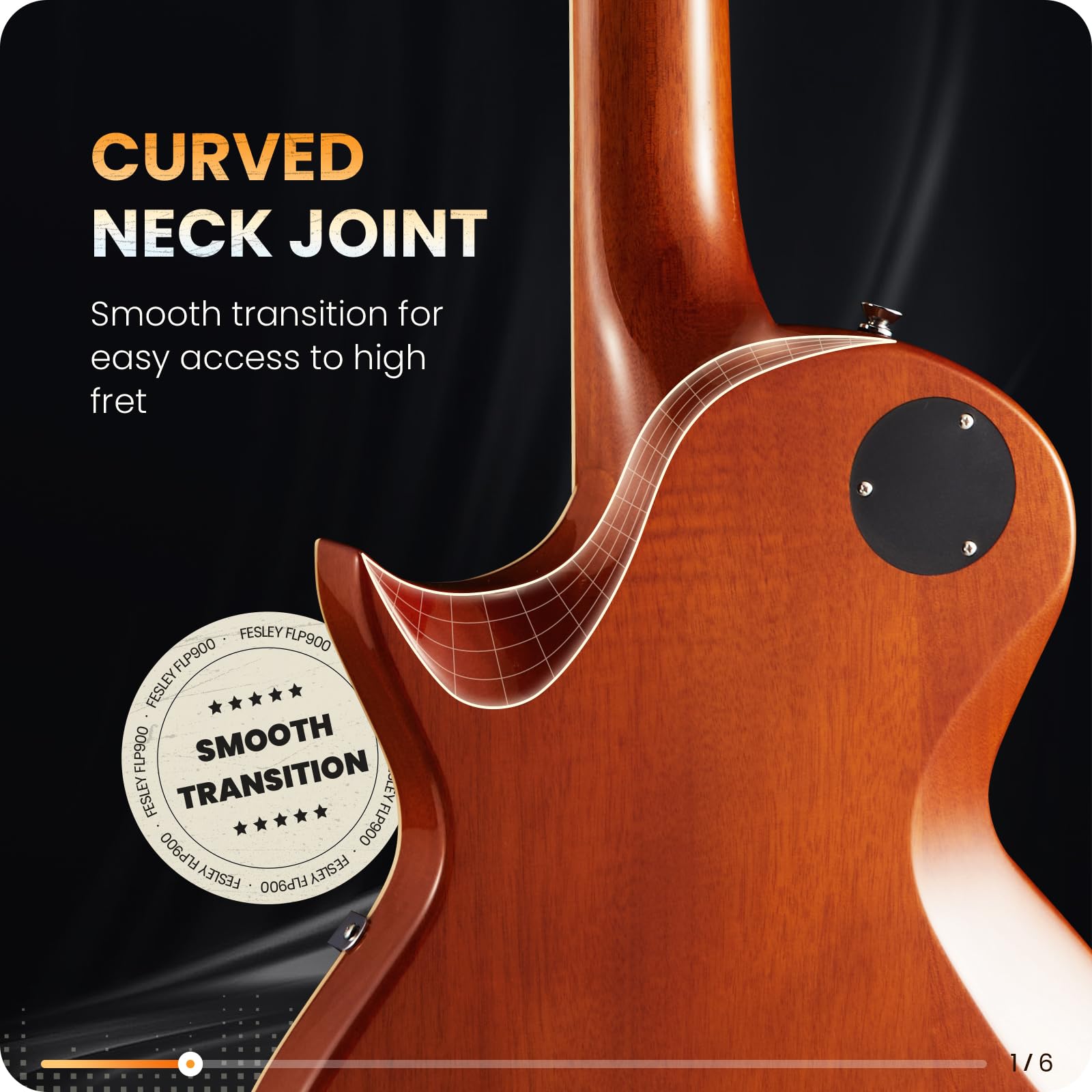 CAPTIVATE WITH AAAA MAPLE TOP AND MODERN WEIGHT RELIEF: The Fesley FL900 electric guitar stands out with its breathtaking AAA-figured maple top, showcasing a striking flame pattern. Its ultra-modern weight relief design reduces bulk while maintaining vibrant acoustic resonance. The slim, contoured mahogany body offers a comfortable fit, ensuring exceptional playability. With its stunning looks and lightweight feel, the guitar is perfect for both stage presence and effortless performance.