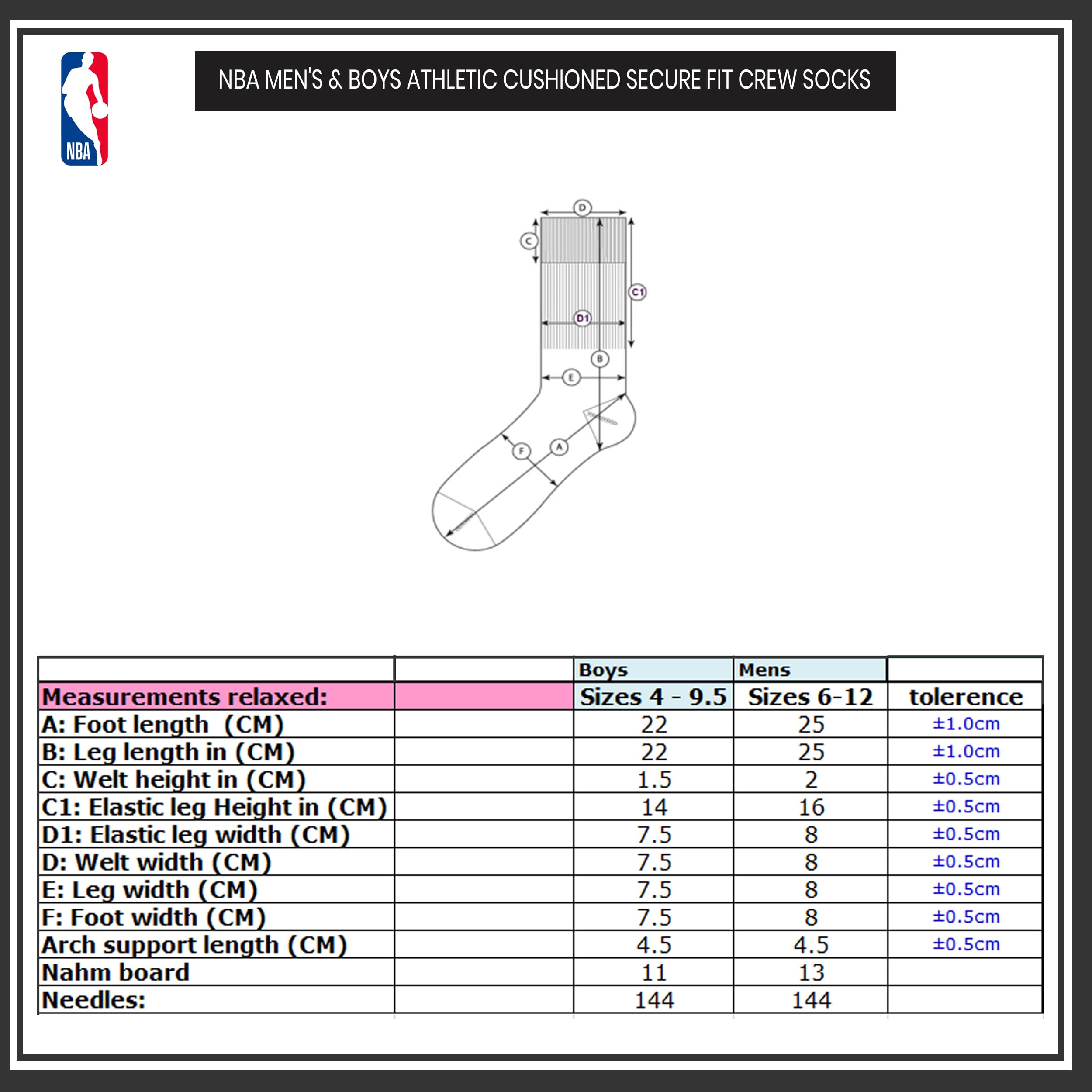 OFFICIAL NBA TEAM COLORS: The logo of your favorite NBA team is displayed at the top of the socks using official team colors, just under the matching jersey stripes.