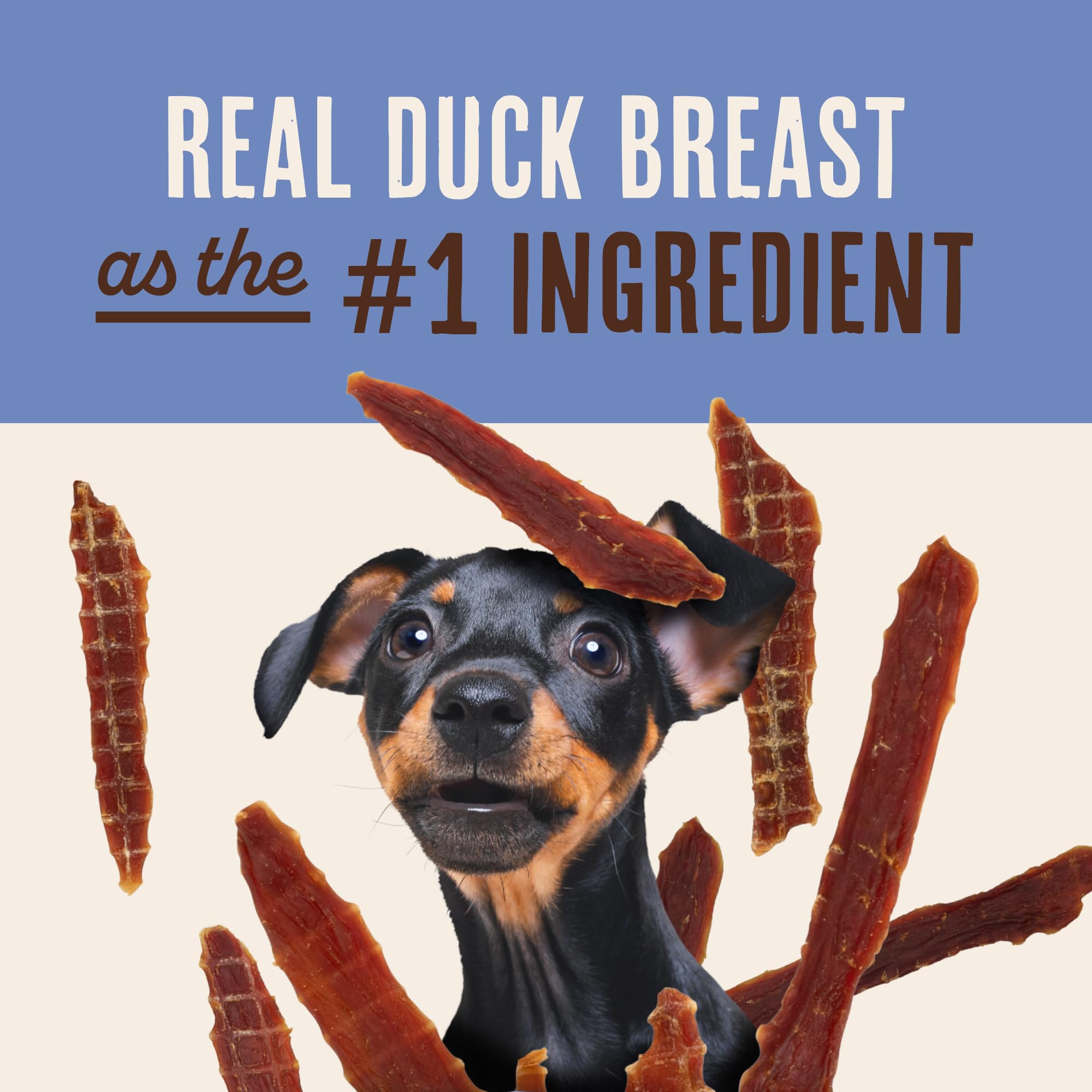 100% REAL DUCK BREAST AS THE #1 INGREDIENT: Waggin' Train duck jerky tenders for dogs are always made with real duck breast as the #1 ingredient. Our treats for dogs are made with whole muscle duck breast and just three ingredients