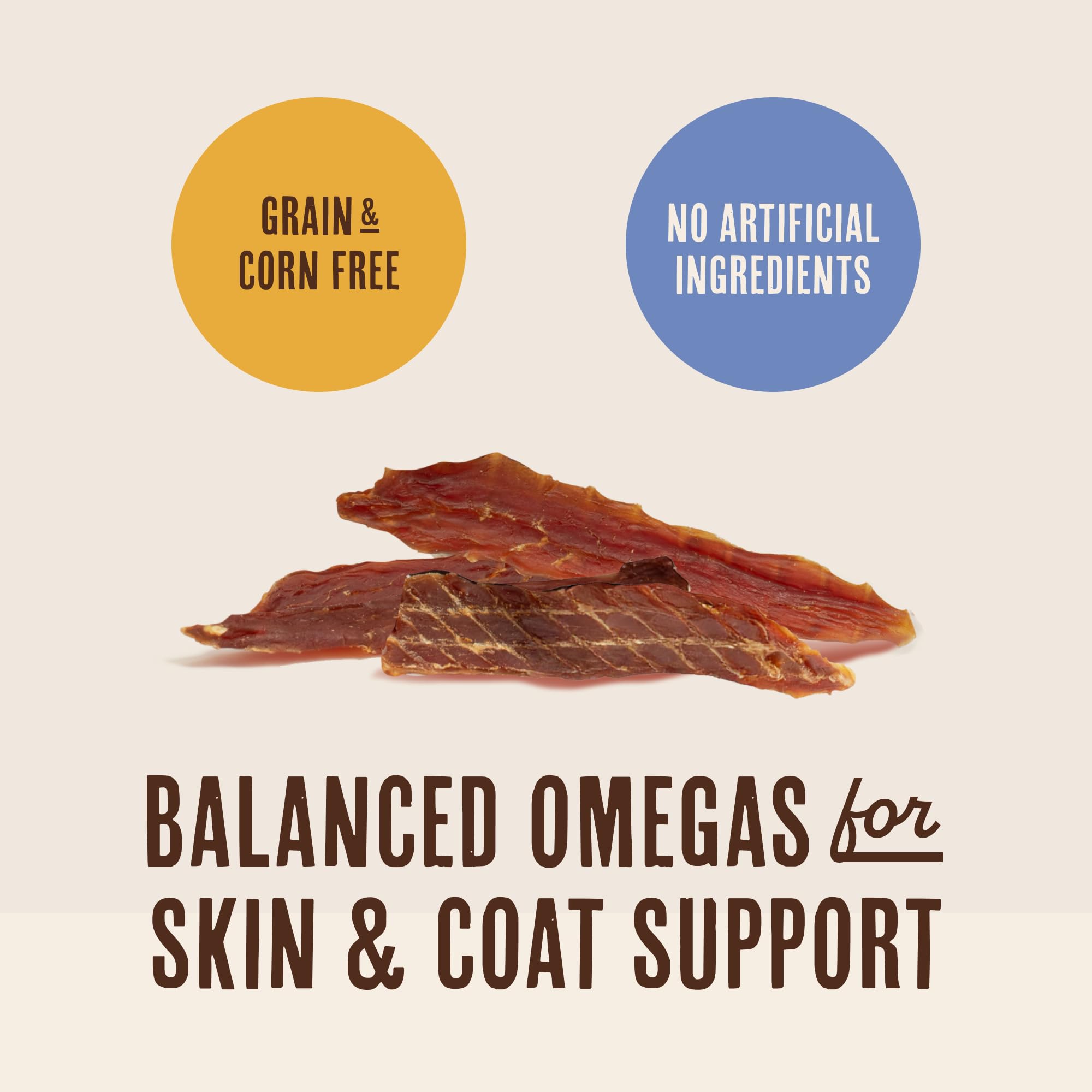 A PURPOSEFUL APPROACH: Our dog treats are never made with any artificial colors or flavors. Waggin' Train jerky for dogs are always grain-free and corn-free. We don't use any fillers – it's a 100% digestible dog snack, even for a sensitive stomach