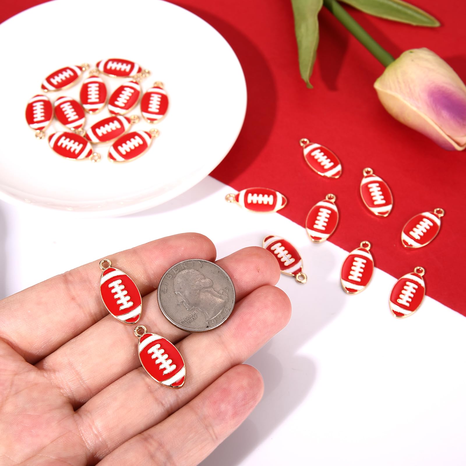 ღ Premium Quality & Size: Complete your Game day outfits with this fun red white football charms. Made of premium quality enamel and metal materials, nickle free, lead free, anti-corrosion, lightweight, sturdy and solid. Length: about 0.6inch. A jump ring is attached to the top of the charm, so you can easily add it to your designs