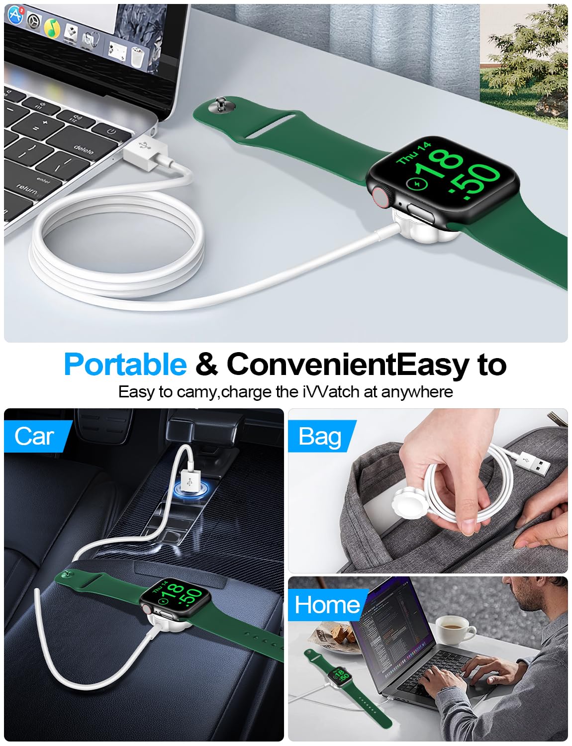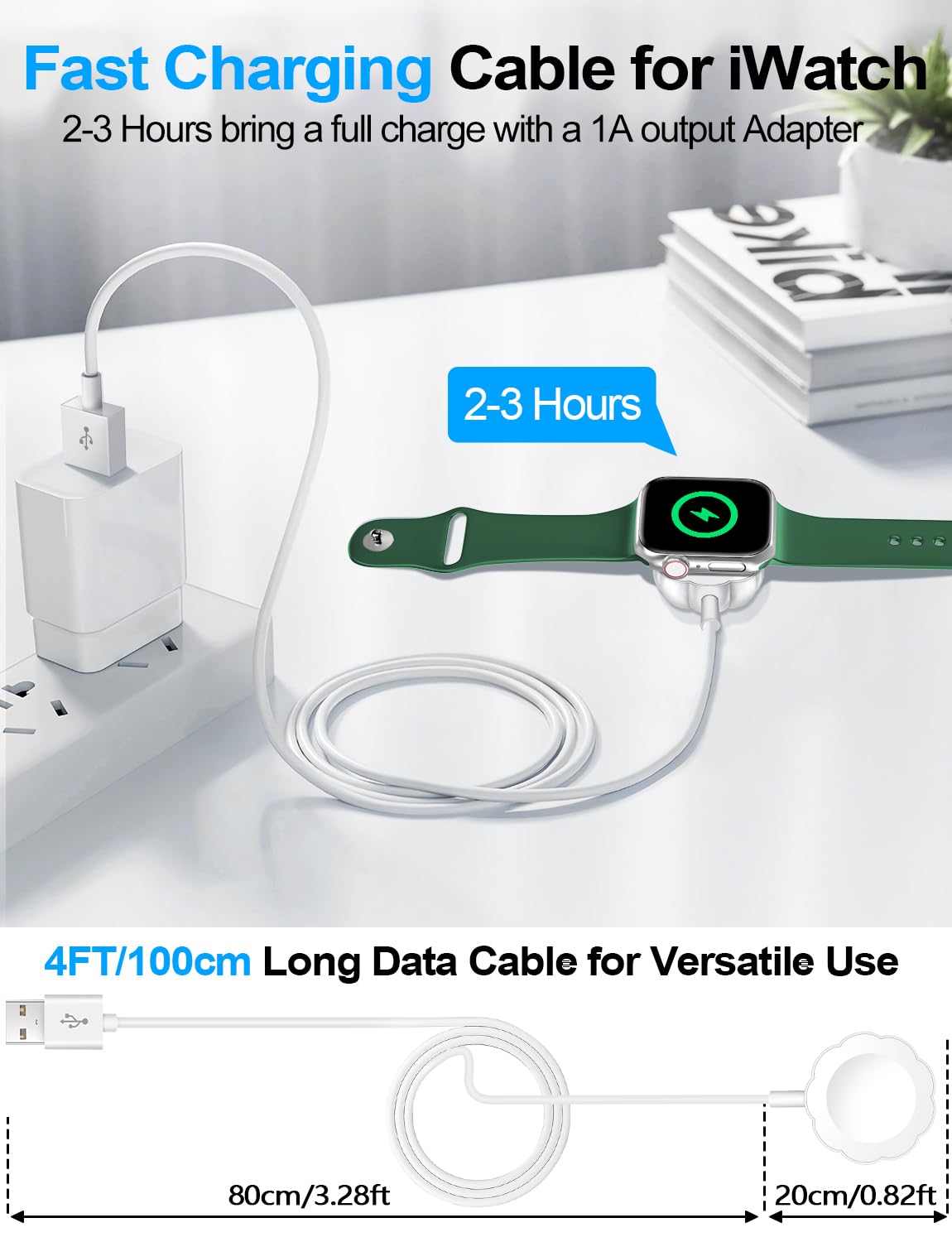 【Portable design】- This 3.3Ft charging cable for apple watch is convenient to carry around, especially for traveling,and is suitable as a backup charger for your watch.Please take off the watch case and use a 5V/1A adapter or original adapter(ETL/UL Certified).
