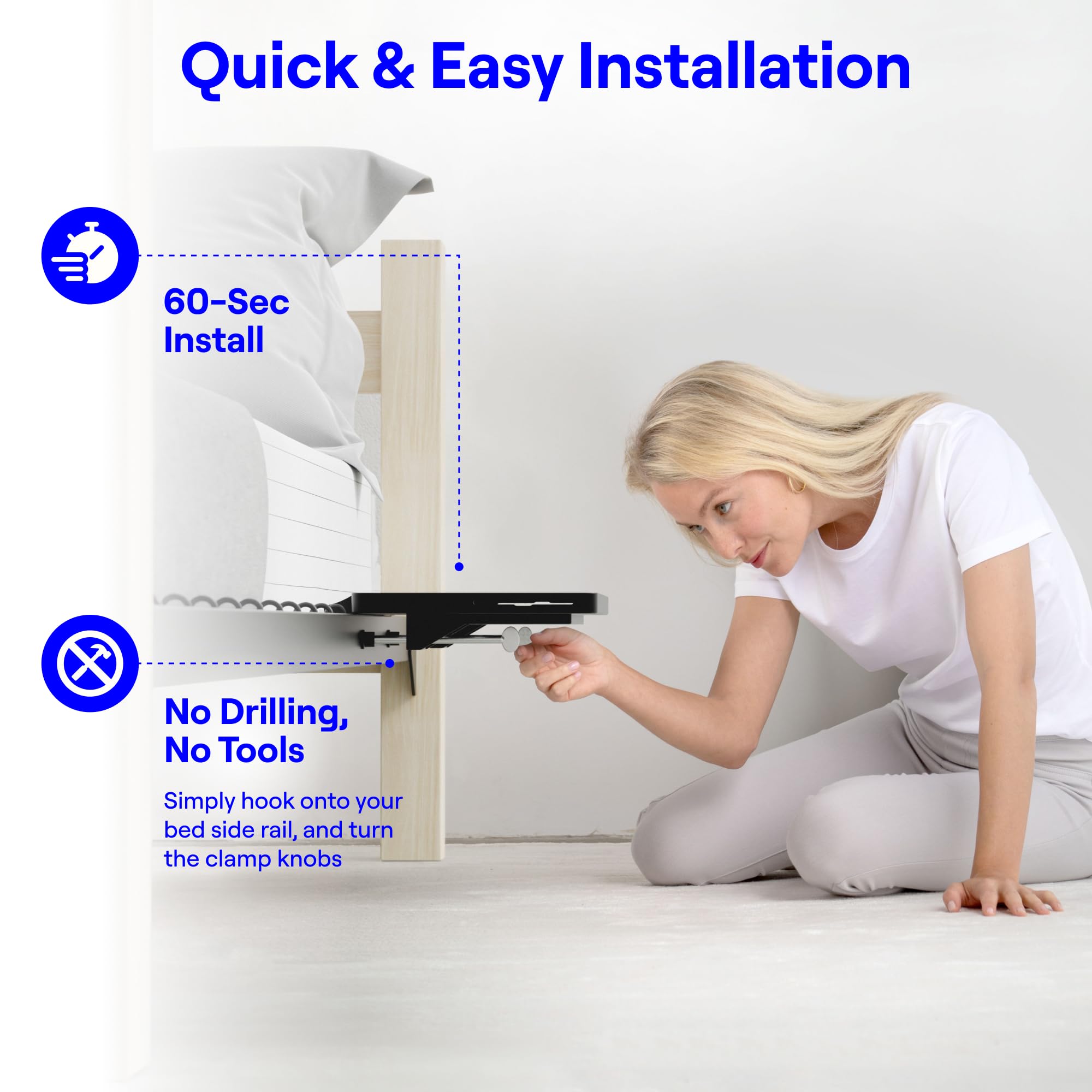HASSLE-FREE, TOOL-FREE INSTALLATION: Say goodbye to complicated setups! The BedShelfie Bed Shelf Table is designed for effortless installation, so you can start using it immediately. No tools or confusing instructions needed—simply slide and attach the versatile tray to the side of your bed, bunk bed, or even couch. Enjoy an instant upgrade to your space with zero hassle!