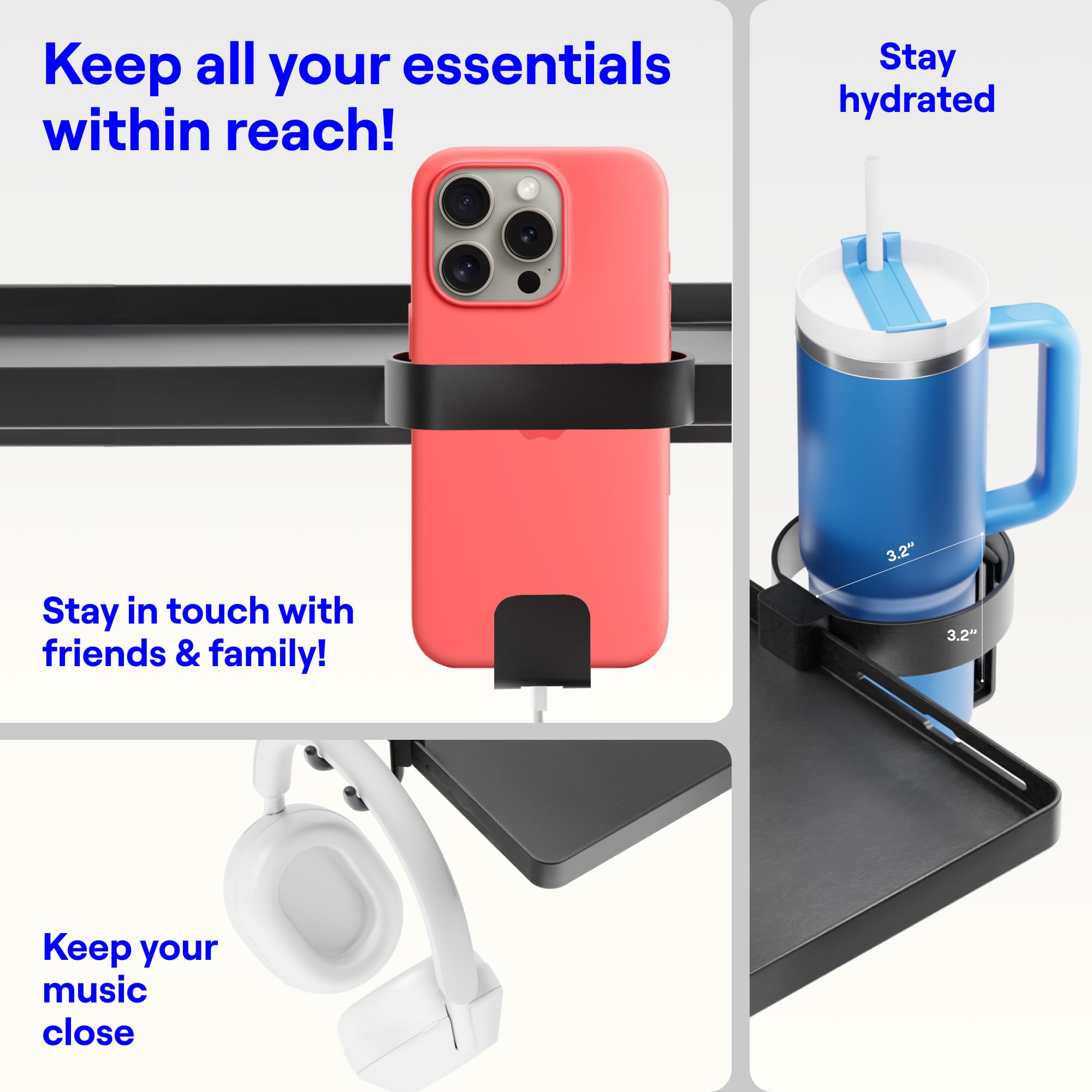 ENDLESS CUSTOMIZATION WITH MODULAR ACCESSORIES: Take your bedside setup to the next level with the DormEssential's clever Hole & Peg system, built for compact living. This all-in-one model includes a cup holder (fits up to a 40oz Stanley tumbler), phone holder, and two j-hooks for hanging gear. Each accessory snaps in effortlessly, so you can arrange your space exactly how you like it. Designed for dorm rooms, loft beds, and small-space living—perfect for college students who want function without sacrificing style.