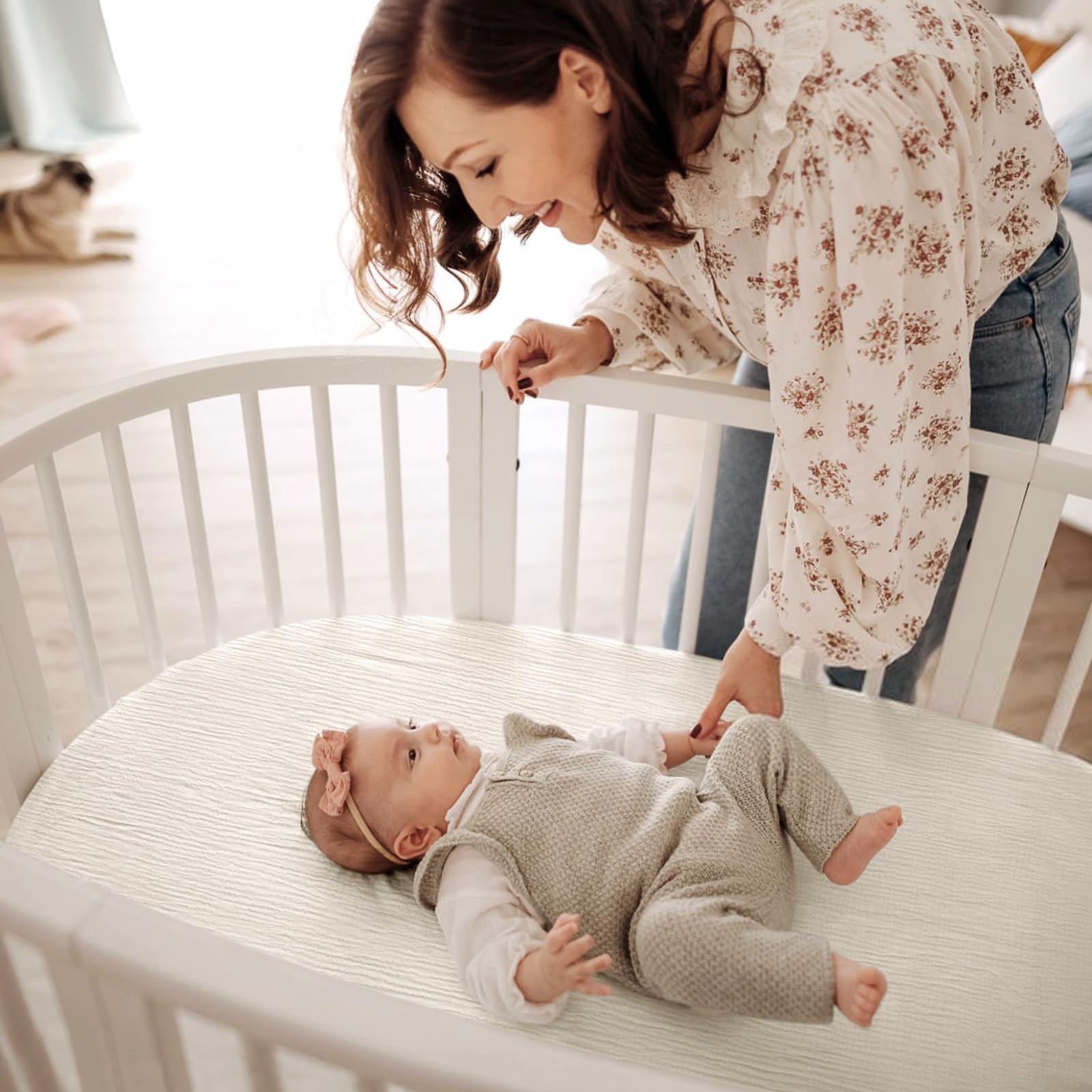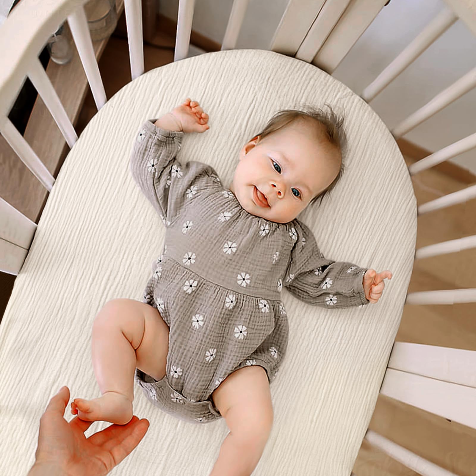 MUSLIN COTTON - The bassinet sheets are made of 100% muslin cotton.The soft and breathable material is gentle on your baby's skin and doesn't cause any irritation.
