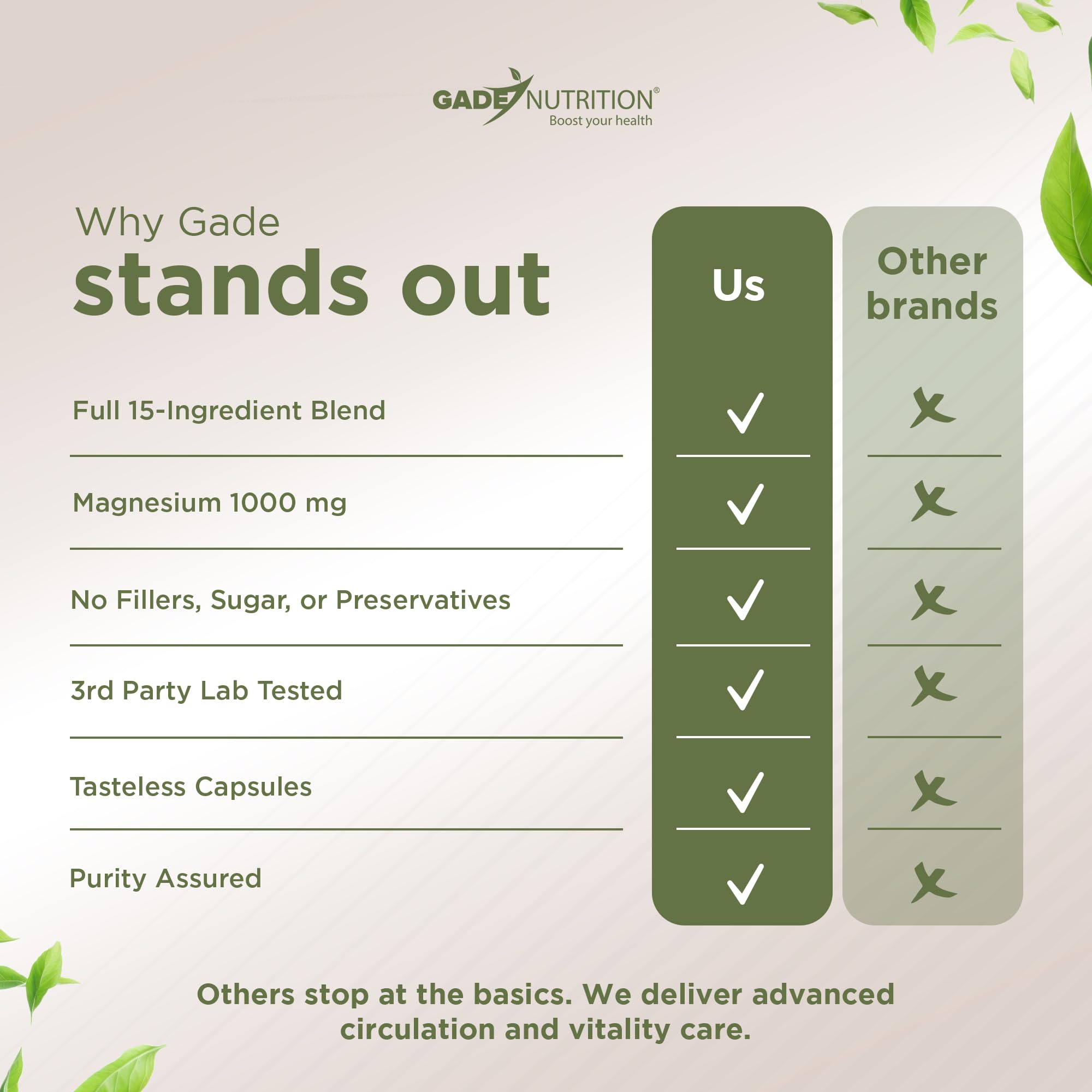 SAFE STANDARD QUALITY: Our products are manufactured in the USA with all-natural, fast-dissolving veggie capsules. Made in an FDA-registered laboratory that is GMP certified. We hold ourselves to high standards of 100% natural purity, Potency, and Third Party Tested. Trust Gade Nutrition for a high-quality supplement. Our pills are made with non-GMO, gluten-free, sugar-free ingredients, no stimulants, no binders, no fillers, no allergens, and no chemicals