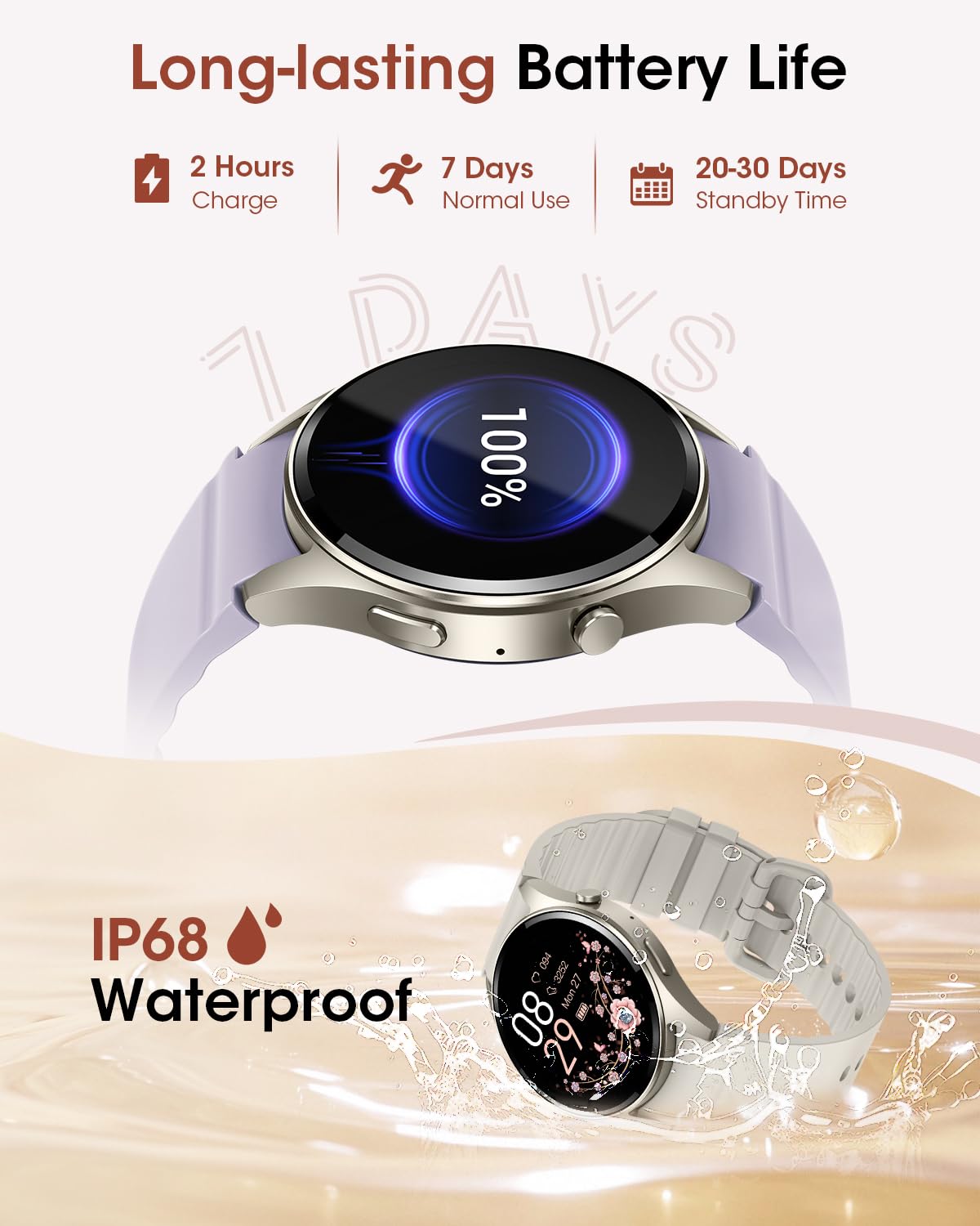 【1.26-inch Sleek Design】Smartwatches blend style and functionality, designed for fashion-conscious and fitness-minded women and men. Featuring a 1.26-inch HD touchscreen, they eliminate bulky dials for a sleek, lightweight, and comfortable fit that feels effortless all day long. Choose from 400+ watch faces or personalize with your own photos, making the watch uniquely yours