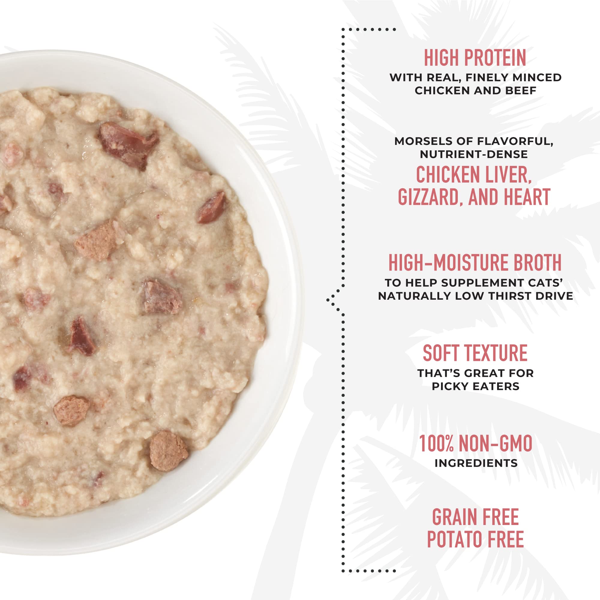As obligate carnivores, cats have a natural instinct to hunt after dark and a nutritional need to eat meat. Tiki Cat® After Dark® Pâté+ is a meat-lover’s dream, closely mimicking cats’ natural prey diets. Real, finely minced chicken and beef - plus meaty morsels of organ meat - are combined with savory broth for the soft texture cats love. Give your carnivore cat the meat they crave in this tasty, easy-to-eat meal!