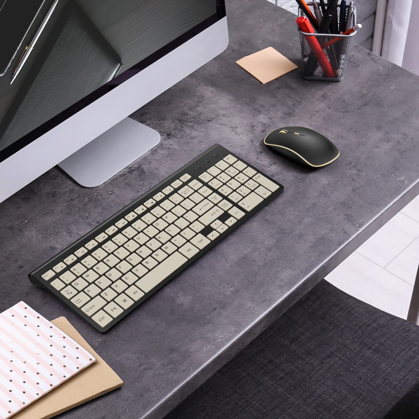 【SILENT MOUSE】Wireless silent mouse adapts less noise switch for both left and right buttons, the cordless mouse for computer ergonomic design also quieter and Easier to click, make you concentrate on your work without disturbing others beside you