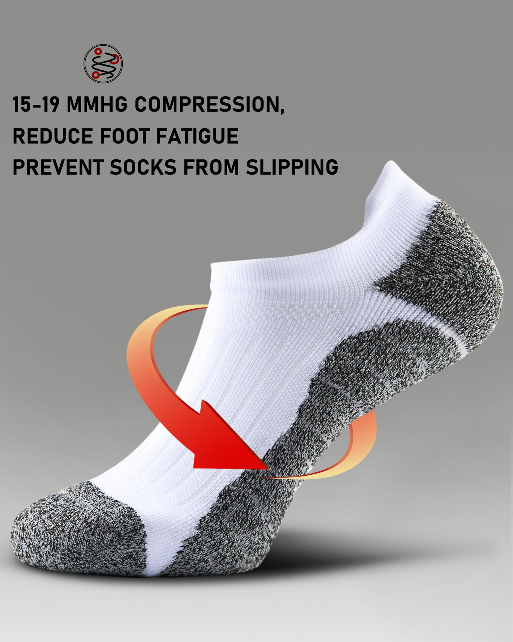 All-Day Compression & Arch Support: The extensive use of Lycra Spandex ensures long-lasting compression that won't slip off the ankle, hugs the entire foot, and enhances arch support