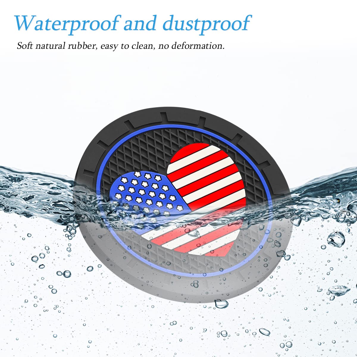 Specifications: Material: PVC Color: Semicircle American Flag with USA Logo, American Flag in Love Heart Shape, Pentagram American Flag with USA Logo, Colored American Flag, Black American Flag Size: Diameter 2.75 inches (7cm), Thickness 0.2 inches Weight: About 18g Package Include: 2 * Car Cup Holder Coaster About Product: - The coaster is waterproof and can be washed in water using a brush and dried quickly. - The coasters are soft and flexible, bend at will, rebound in a second and easily return to their original shape. - The PVC material is non-flammable and has a strong weather resistance, so you can use it with confidence.