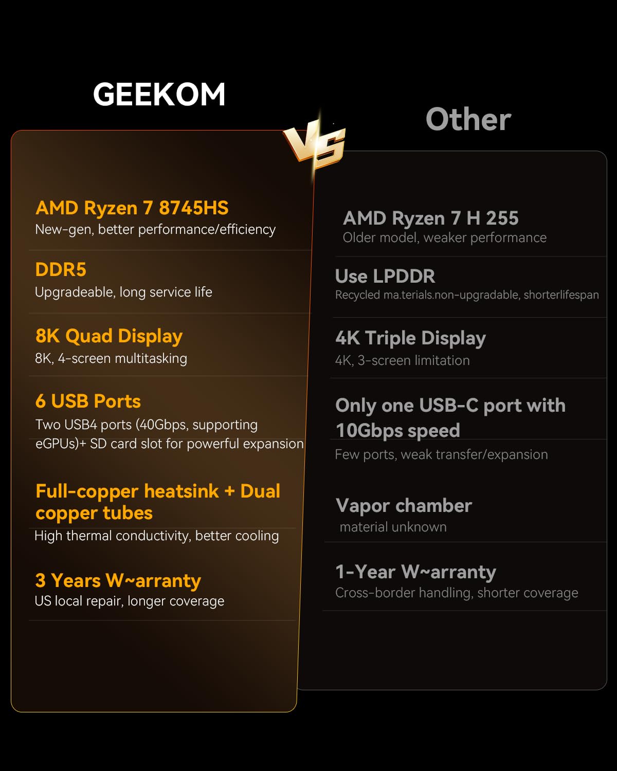 [๐ก๏ธWorry-Free for 3 Years] Many brands offer only a one-year warranty because they know their products won't maintain consistent performance long-term. GEEKOM confidently offers a ๐ฏ-๐๐ฒ๐ฎ๐ฟ ๐๐ฎ๐ฟ๐ฟ๐ฎ๐ป๐๐, reflecting its absolute confidence in materials and build quality. This reliability is further backed by multi-certified safety and efficiency ratings (๐๐๐, ๐จ๐, ๐๐ก๐๐ฅ๐๐ฌ ๐ฆ๐ง๐๐ฅ, ๐ฎ๐ป๐ฑ ๐บ๐ผ๐ฟ๐ฒ). Stop settling for lessโsecure your 3-year protection now.