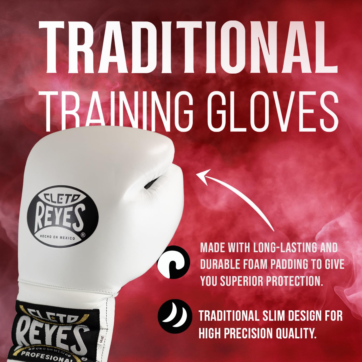 PROFESSIONAL-GRADE TRAINING GLOVES: CLETO REYES lace-up heavy-duty boxing gloves are handcrafted in Mexico from COW LEATHER, anatomically designed with a form-fitting curved knuckle area for better fist closure