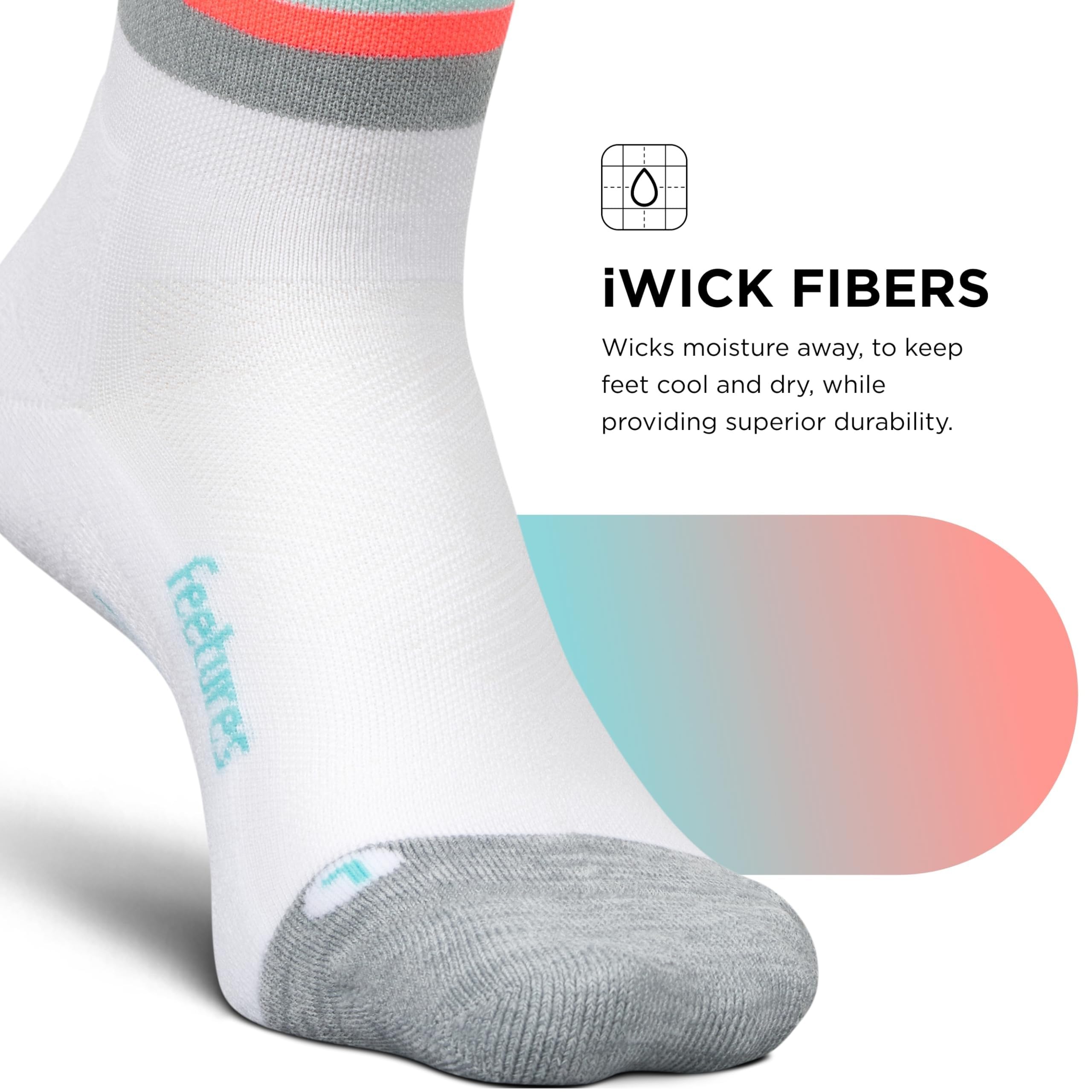 Athletic Socks: These Feetures socks are engineered with Targeted Compression and anatomical design that conform to the left and right structure of the foot providing a custom-like fit and reduced risk of blisters because of the seamless toe construction