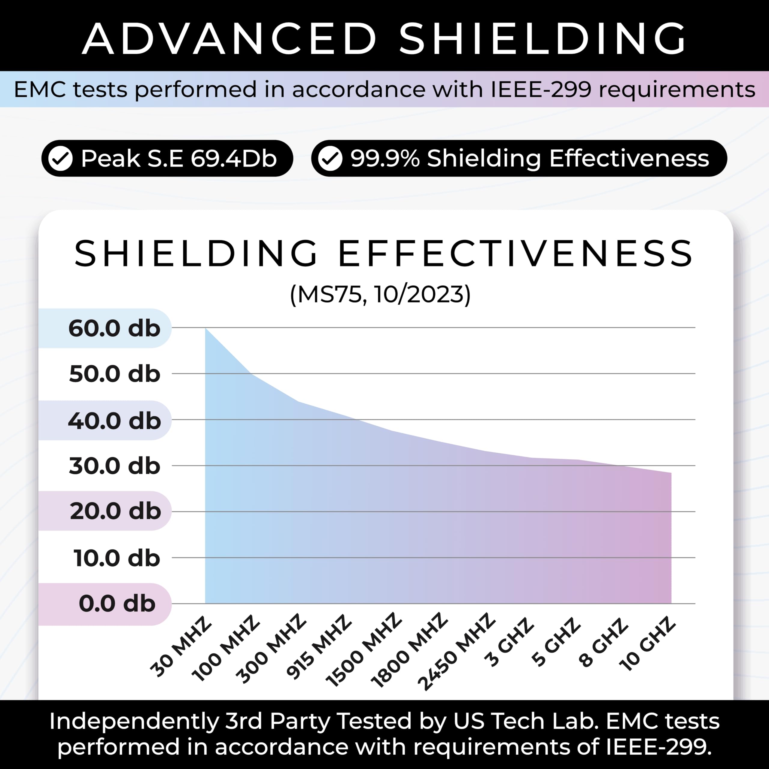 Testing Instructions - Test Aegis' shielding capacity using an E M F meter with R F reading capabilities. Measure levels both inside and outside. DO NOT use a phone signal for proper testing.