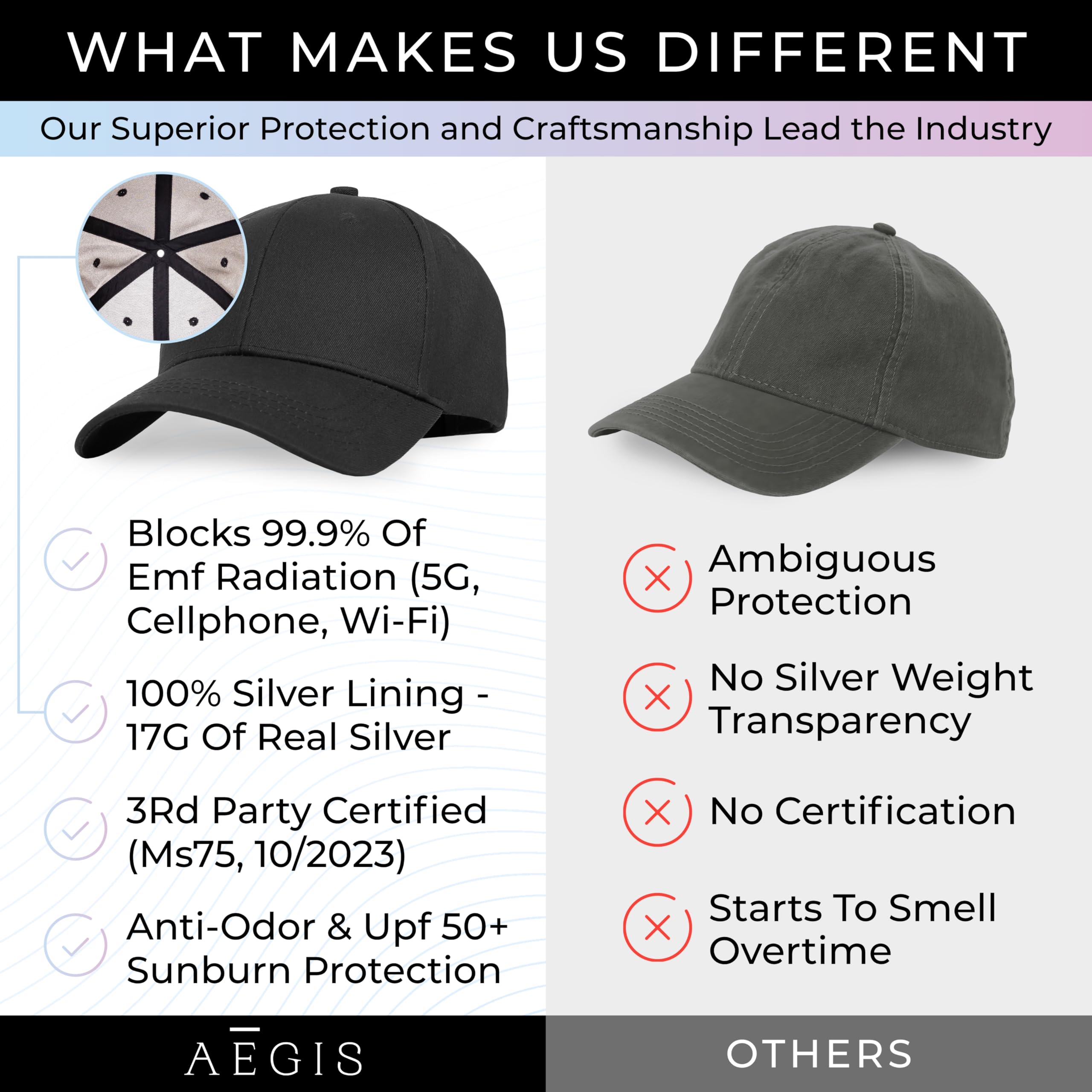 Peace of Mind with Comprehensive E M F Protection - Aegis Apparel's E M F blocker faraday hat offers edge-to-edge silver lining that serves as an excellent electromagnetic wave blocker and shield.