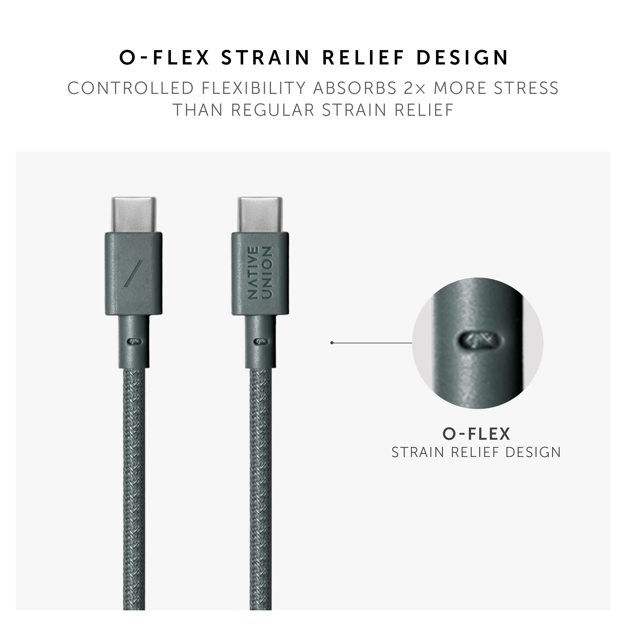 ULTRA-STRONG: Durable nylon braided cable featuring a reinforced structure crafted with DuPont Kevlar fiber for unparalleled strength. O-Flex strain relief design at connector joint absorbs 2x more stress than regular strain relief. Its 10,000+ bend* lifespan makes it 6x stronger than standard charging cables