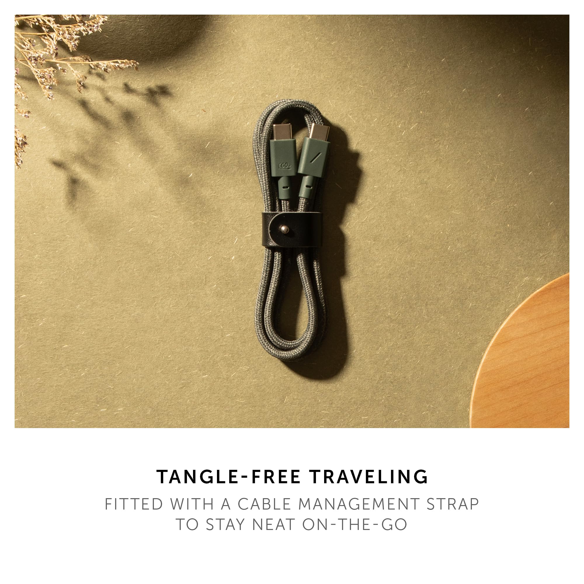 TANGLE-FREE STYLE: Simply wrap up your cable with the integrated genuine leather strap to keep your 4-foot cable neat, tangle-free and in good condition. Slide the belt anywhere along the cable for easy carry