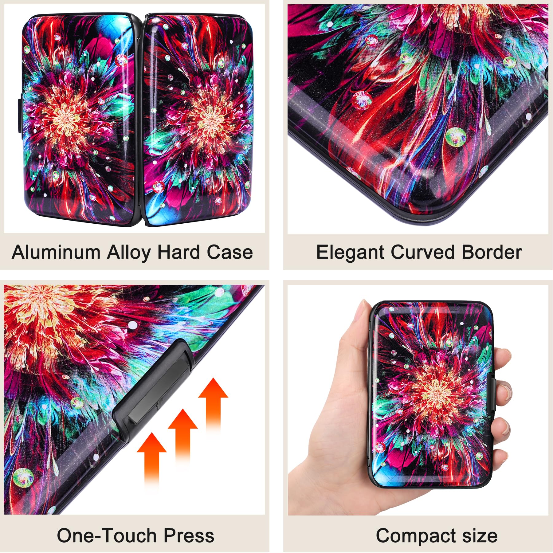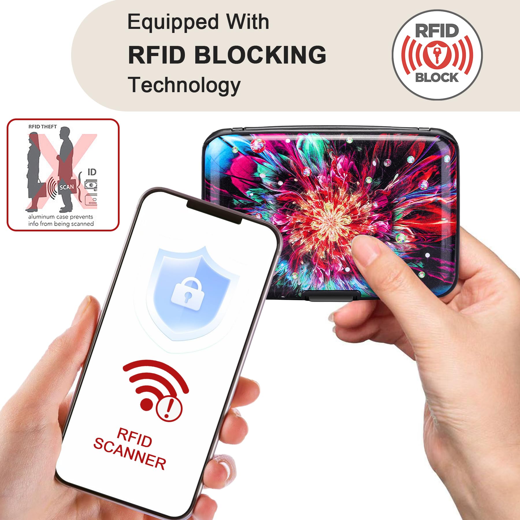 This credit card holder is made of aluminum shells, ABS plastic frame and clasp closure, RFID-blocking will protect your card data from RFID scanners and readers.