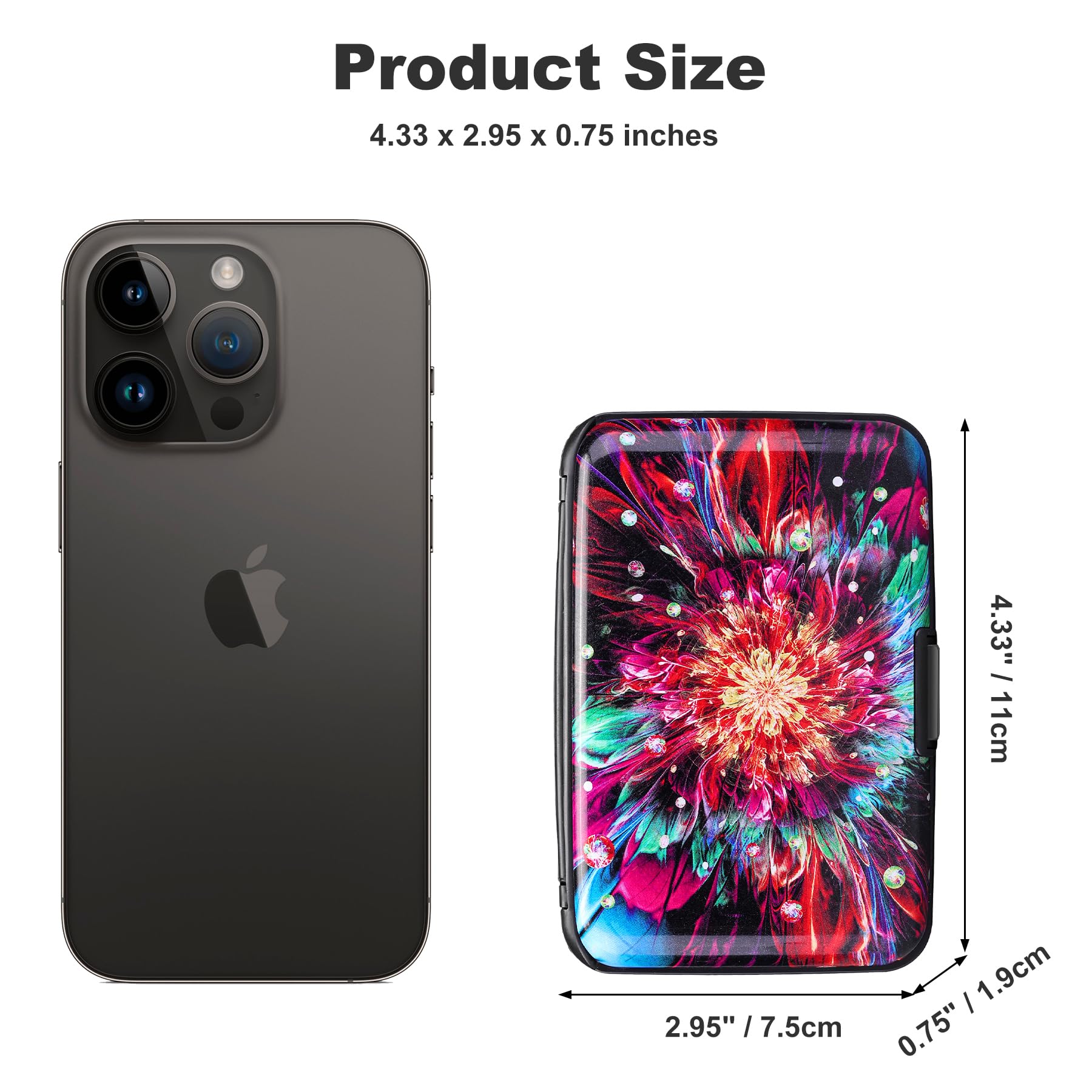 The size is 4.33 x 2.95 x 0.73 inches, Slim and small exterior design, are fit in your front pocket,suitable for travel and business carrying.