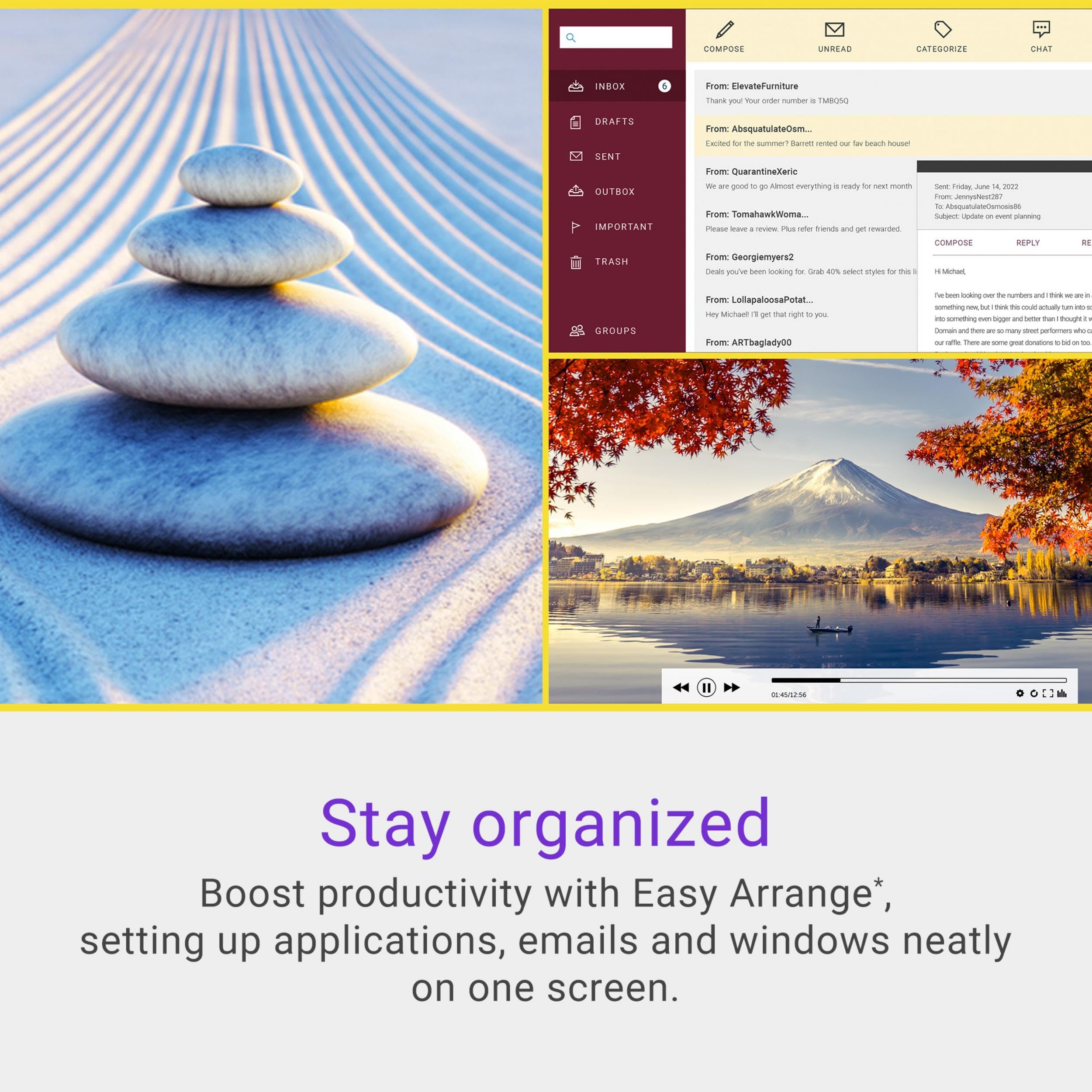 Vibrant visuals: Enjoy consistent color and clarity with 99% sRGB color coverage and 1500:1 contrast ratio, while a 100Hz refresh rate delivers more seamless scrolling and smoother motion.