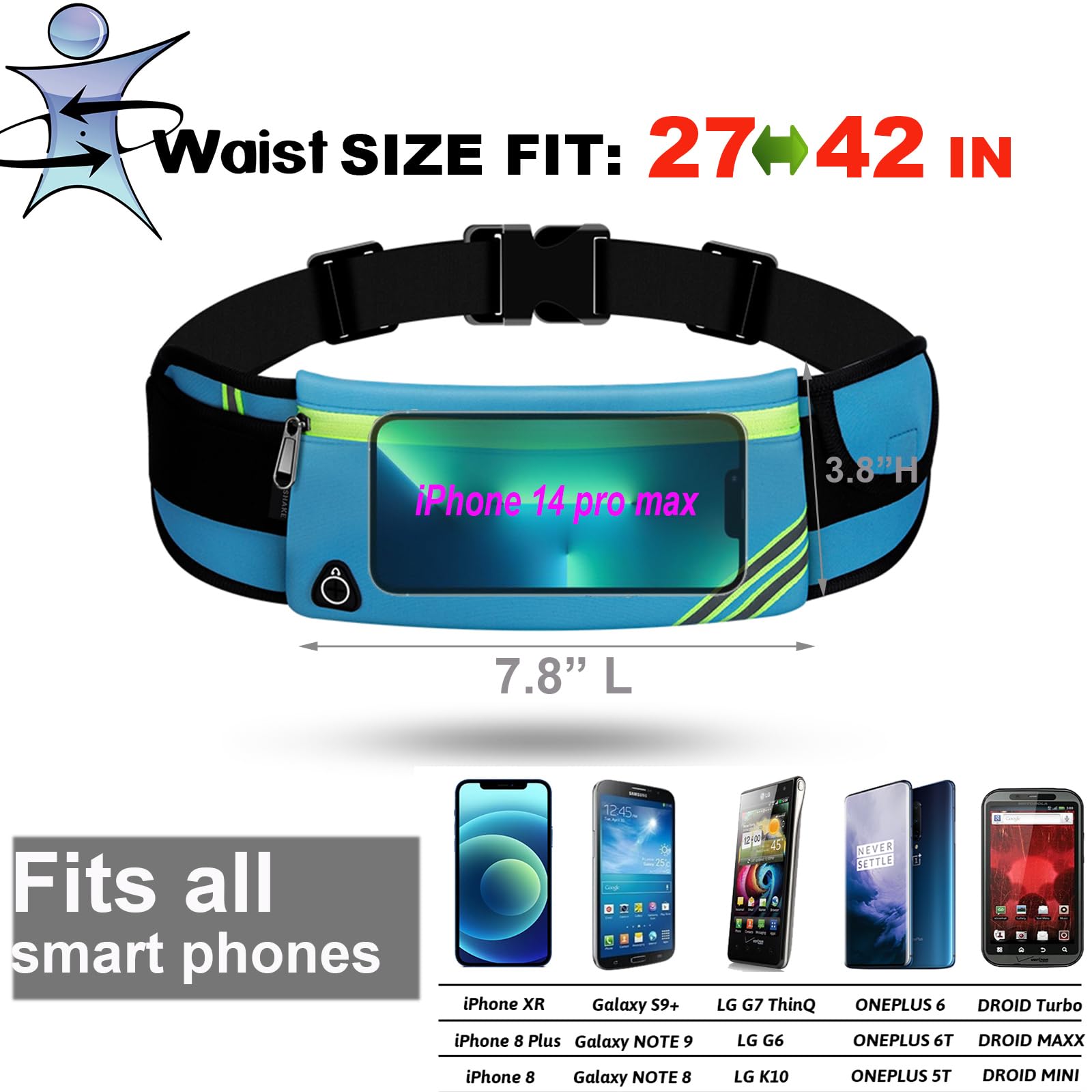Ample Storage Space – Main pouch size: 3.8" x 7.8" (HxW). Provides independent protection for your phones from screen scratches, cash, key and watch from Water, Sand, Dust and Dirt. It is easily for running, hiking, cycling, and other outdoor sports with no worries.