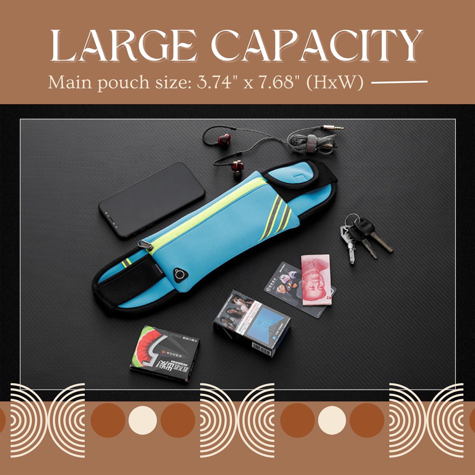 Superior Quality & Comfortable Wear - Not only durable, but also light and compact for your comfortable wear. With adjustable stretchy straps, Nylon Lycra fabrics for breathable material can keep your body cool. No bouncing, no chafing and no clutter. NOT FOR WALLET!