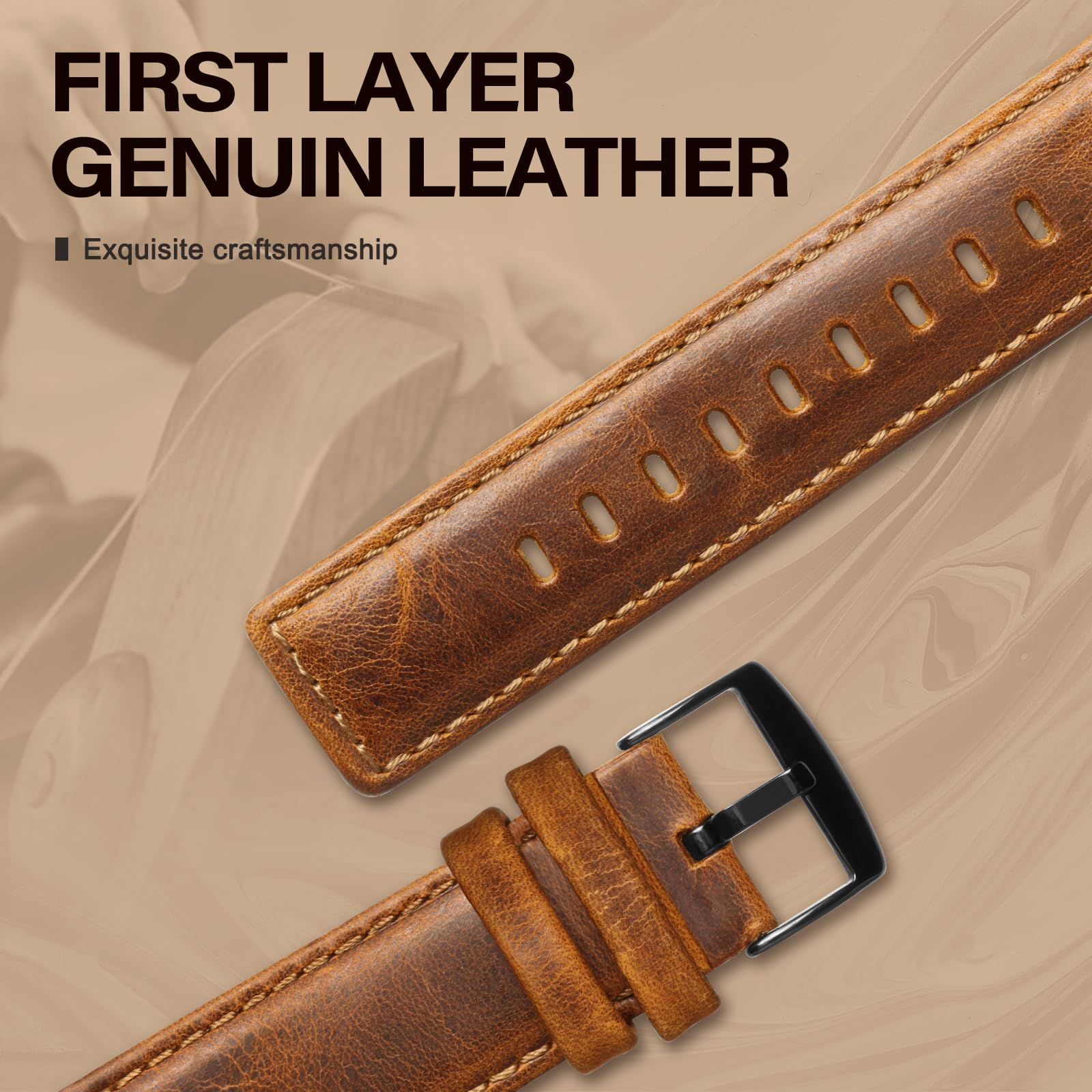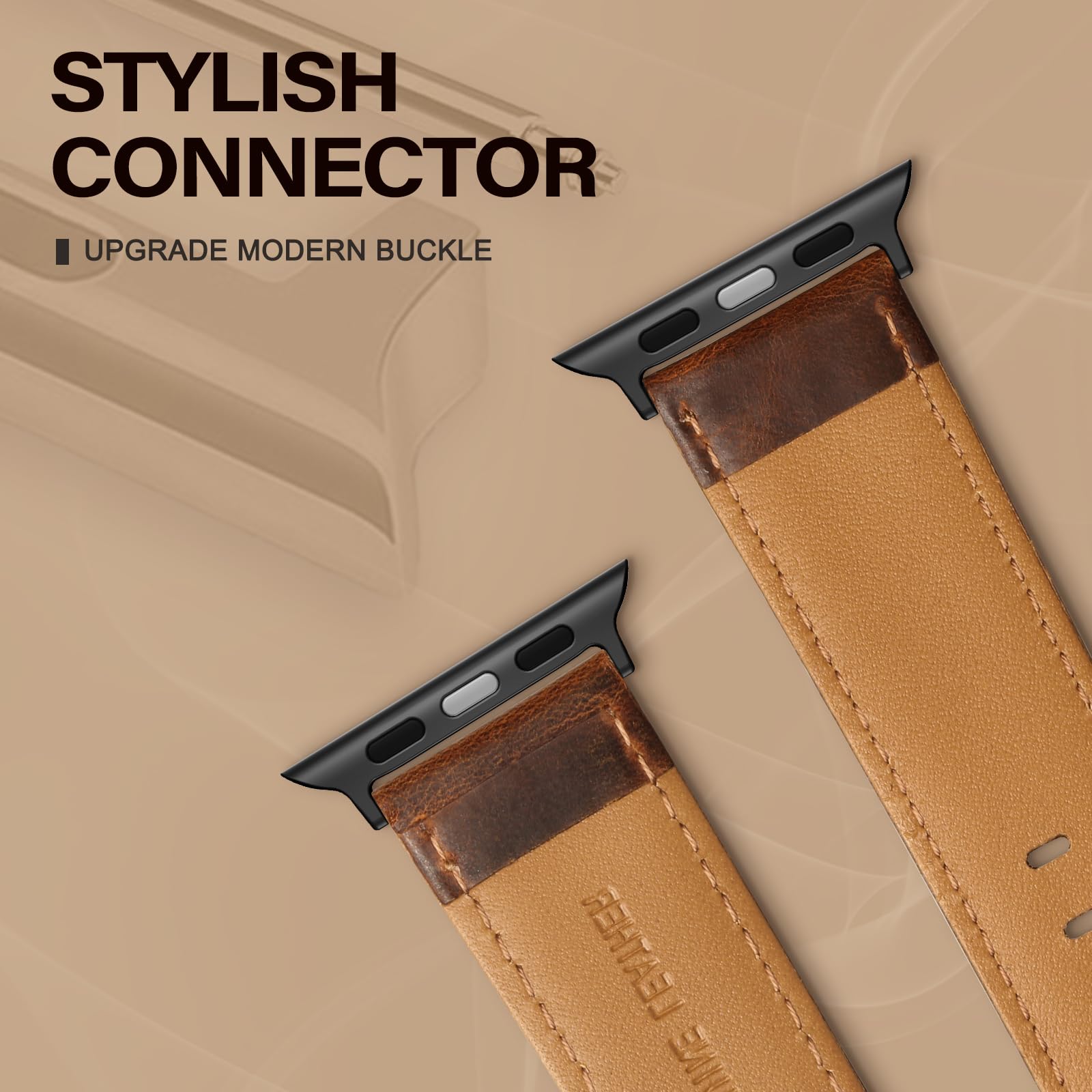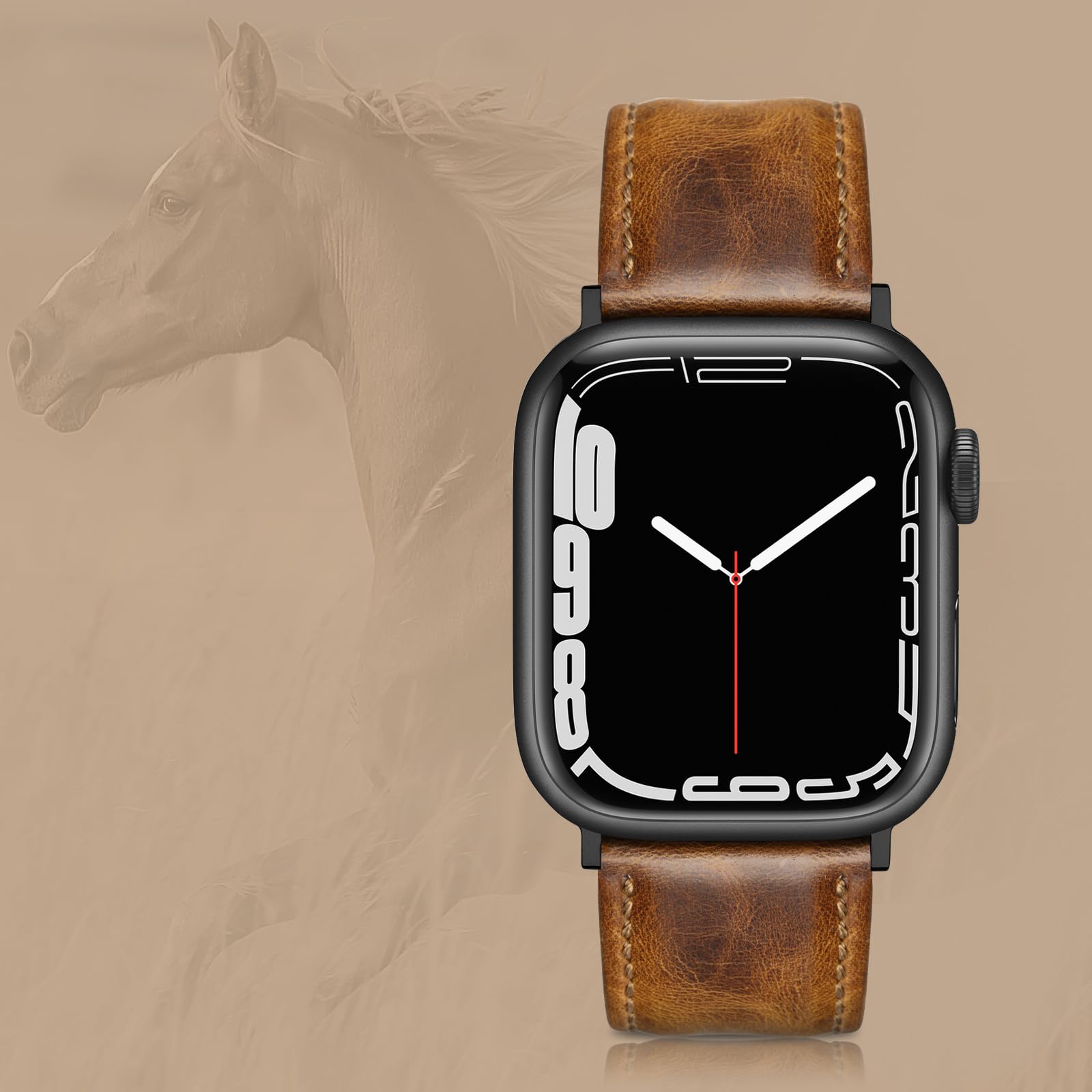 Quality: This leather band is compatible with Apple watch bands 42mm( series 1/ 2/ 3), iWatch 44mm (series 4/5/6), iWatch 45mm (series 7/8/9), iWatch 46mm (series 10) made of unique crazy horse vintage Grain Leather Wristbands with classic stainless steel buckle, Soft smooth touch feeling, very comfortable on your wrist. Note: The color may vary somewhat because of the natural variability of the leather, it is a normal appearance.