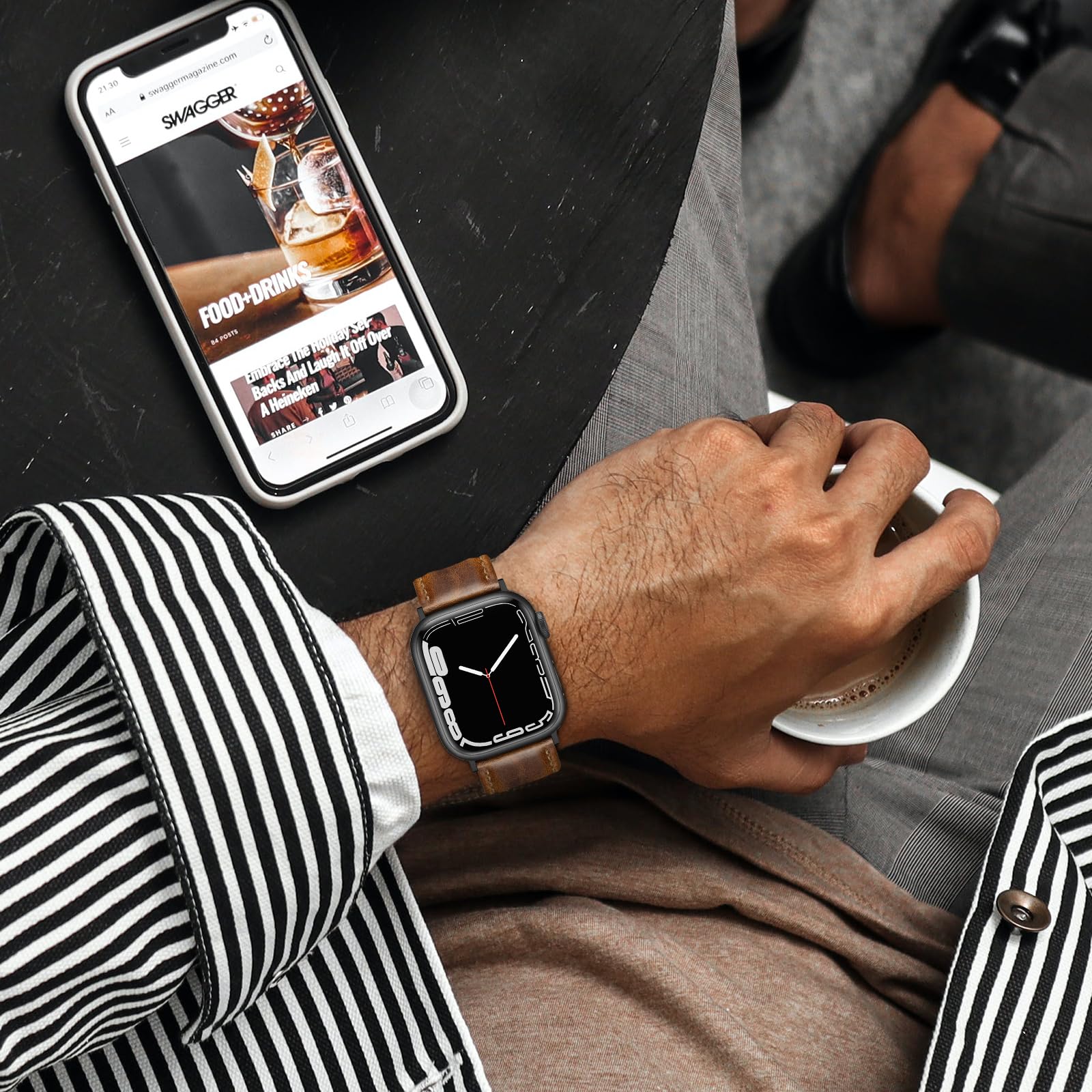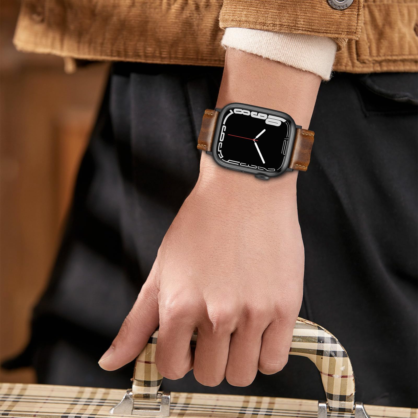 Package Included: A genuine leather strap compatible for Apple watch 42mm series 3/2/1 and iwatch 44mm series 6/5/4, iwatch 45mm series 8/ 7 . Iwatch 46mm series 10, Iwatch SE (NOT include any watch in parcel)