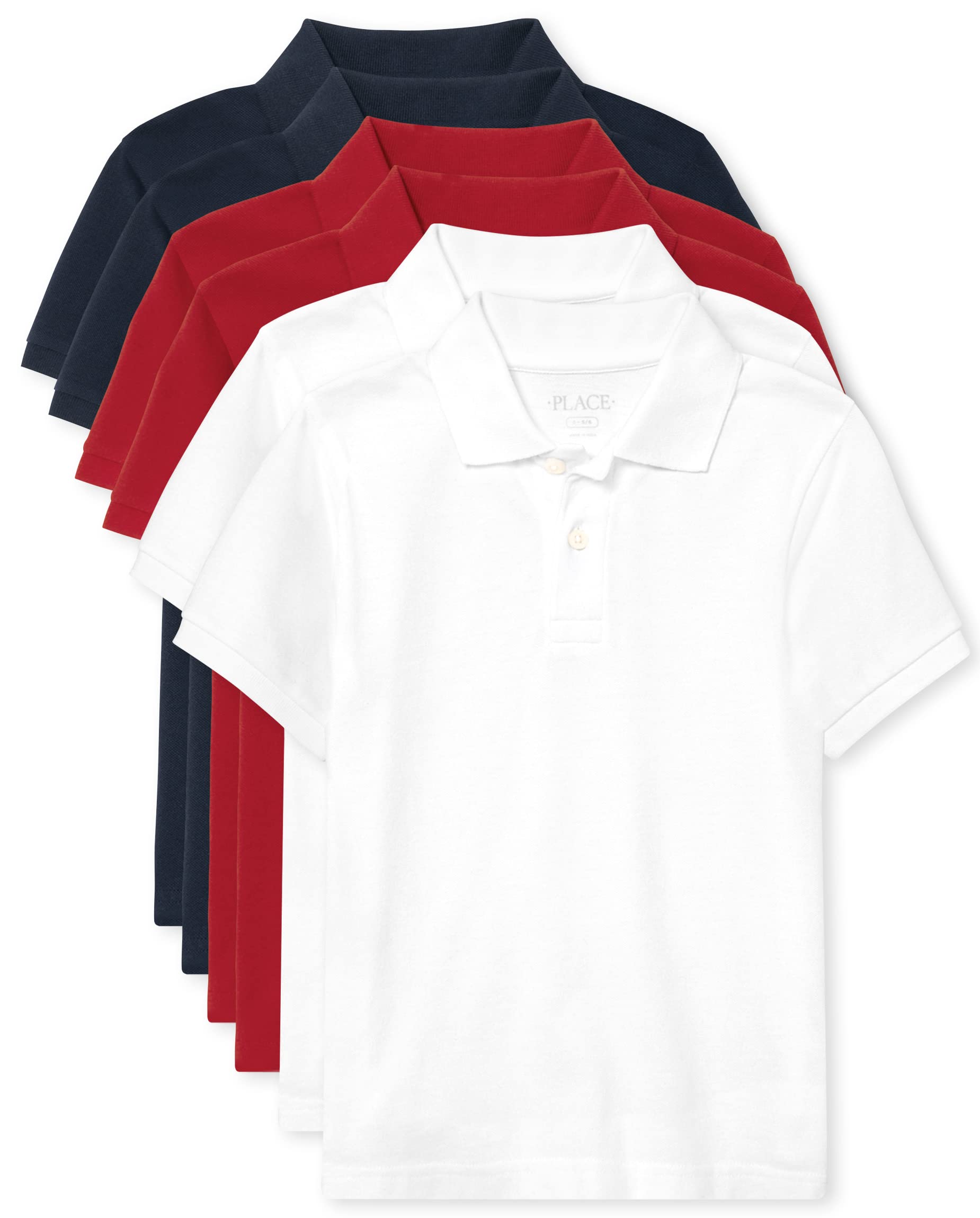 The Children's Place Boys' Multipack Short Sleeve Pique Polos, Nautico/Classic Red/White 6-Pack, Medium