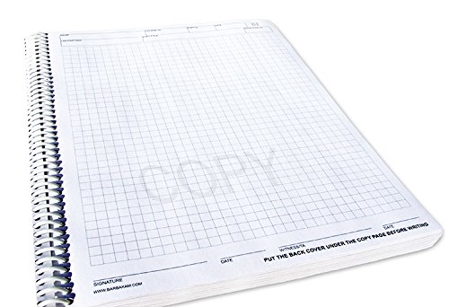 MOST RECOMMENDED LAB NOTEBOOK FOR QUALITY by ChemistryHall.com! White carbonless pages 100 sets (total 200 pages, each original page has a self copying page). No need for a carbon sheet between the pages to create a duplicate. These are carbonless self-copying pages, 1/4 inch graph paper, all pages consecutively numbered, copy page is perforated for easy tear out, top page stays permanently in the notebook. Both the top page and the copy page are white for better clarity. Record of Contents page to log lab experiment information, Lab Safety Rules page, scientific reference information printed on the bi-fold back cover (ex.most up-to-date periodic table, scientific formulas, conversions, etc). Spiral bound Fully laminated cover both sides to protect from spills in a lab, 100 sets (total 200 pages), consecutively numbered pages 1-100, copy page perforated for easy tear out, top page NOT perforated,