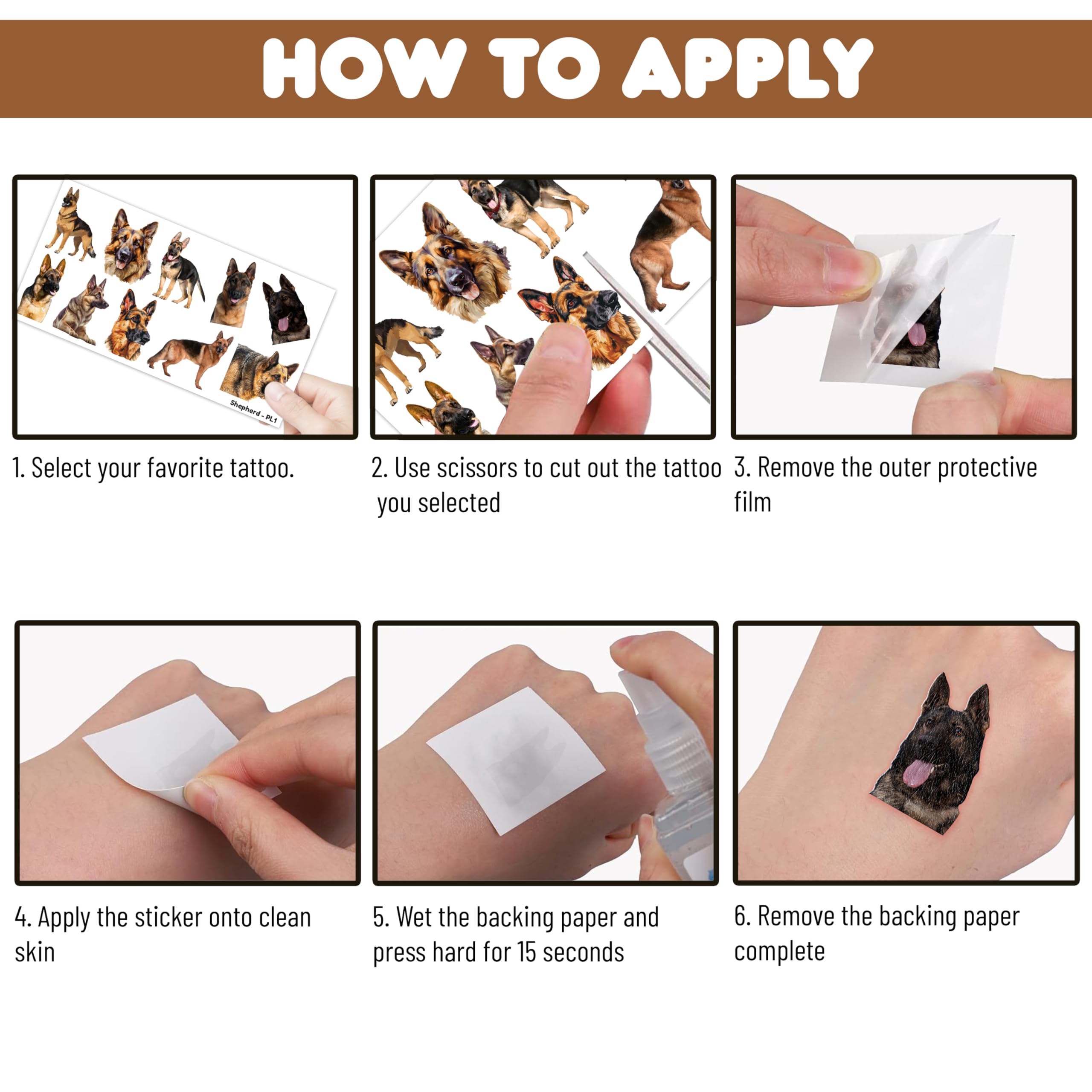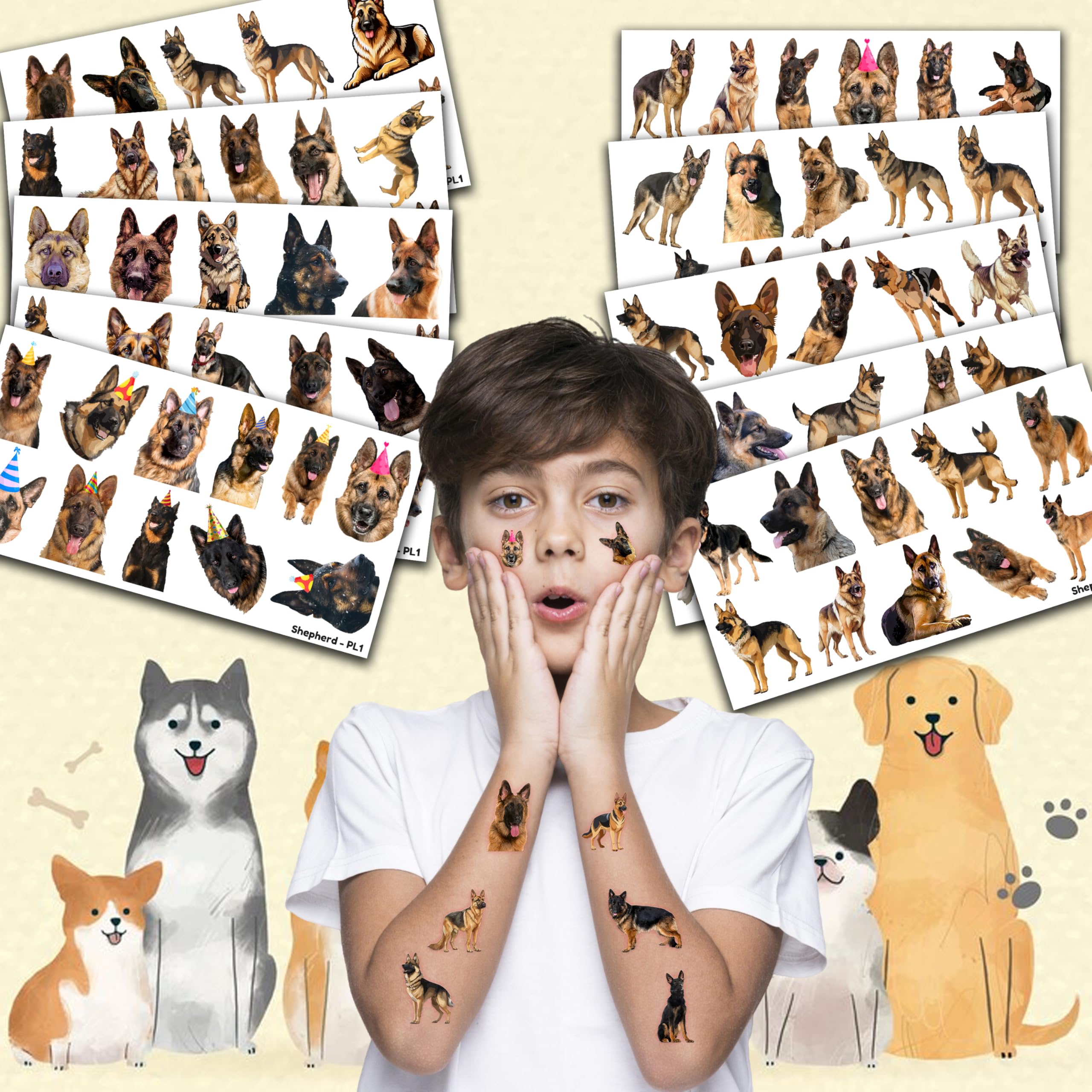 Pattern rich: German Shepherd Dog Realistic Dogs Puppy Temporary Tattoos include 10 Sheets 100 PCS, the size of each sheet is 6.1 * 3.1 inches. Easy to share,even if a lot of people's parties, you can have a different tattoo with others.These adorable tattoos will keep you and your little ones – and their friends – occupied for a while. Great for playdates, parties, or rainy days.