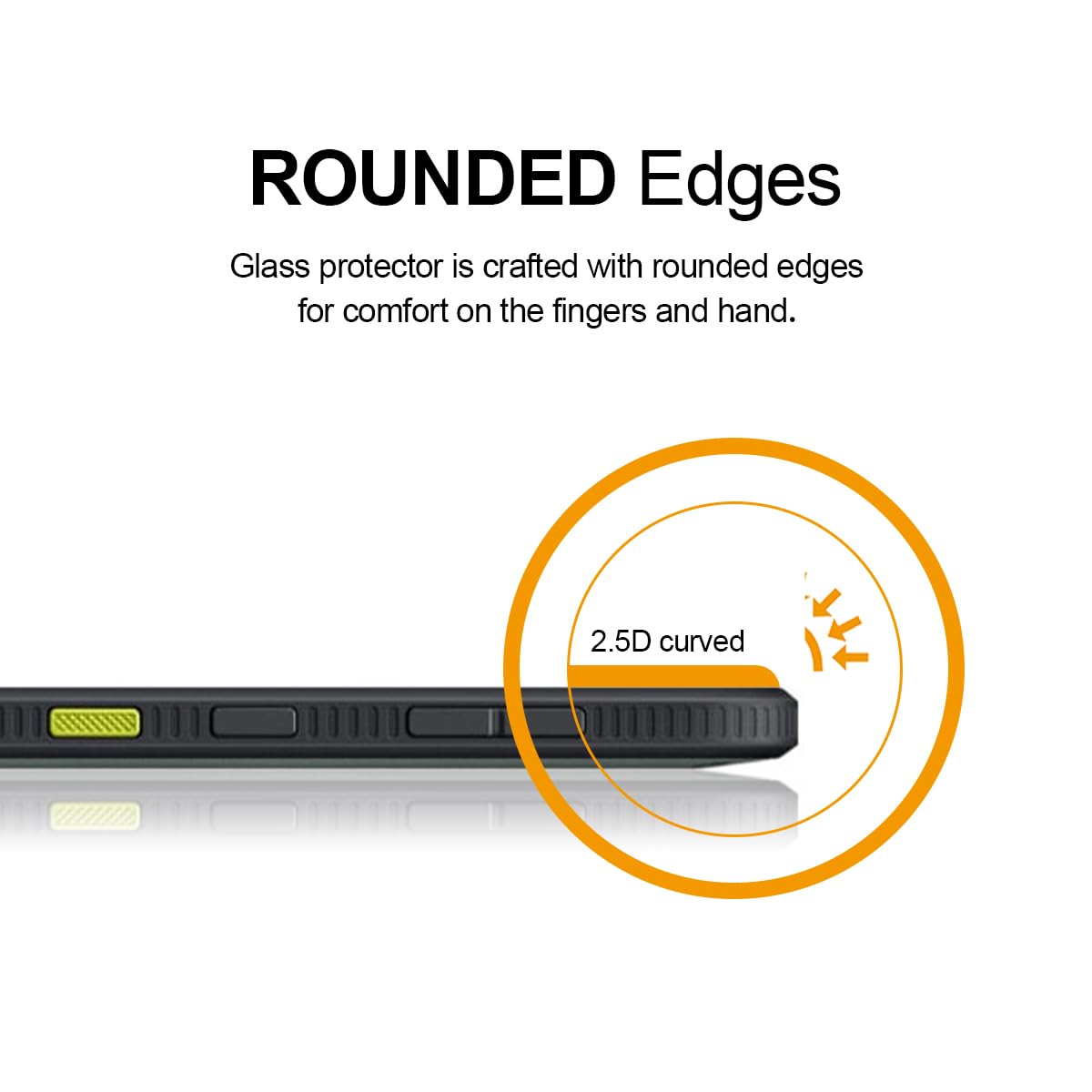 2.5D rounded edge glass for comfort on the fingers and hand