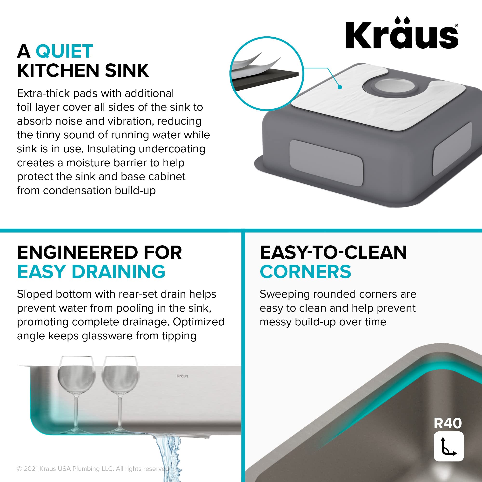 HEAVY-DUTY CONSTRUCTION with high-performance TRU16 Gauge stainless steel that stands up to your everyday kitchen needs – RADIANT PEARL FINISH: Easy-to-clean and wear-resistant, masks scratches and scuffs that can occur over time – SUPERIOR SOUNDPROOFING: Ultra-quiet NoiseDefend pads with innovative foil layer absorb noise and vibration while sink is in use – Anti-condensation undercoating helps prevent moisture build-up to reduce the risk of water damage in the base cabinet