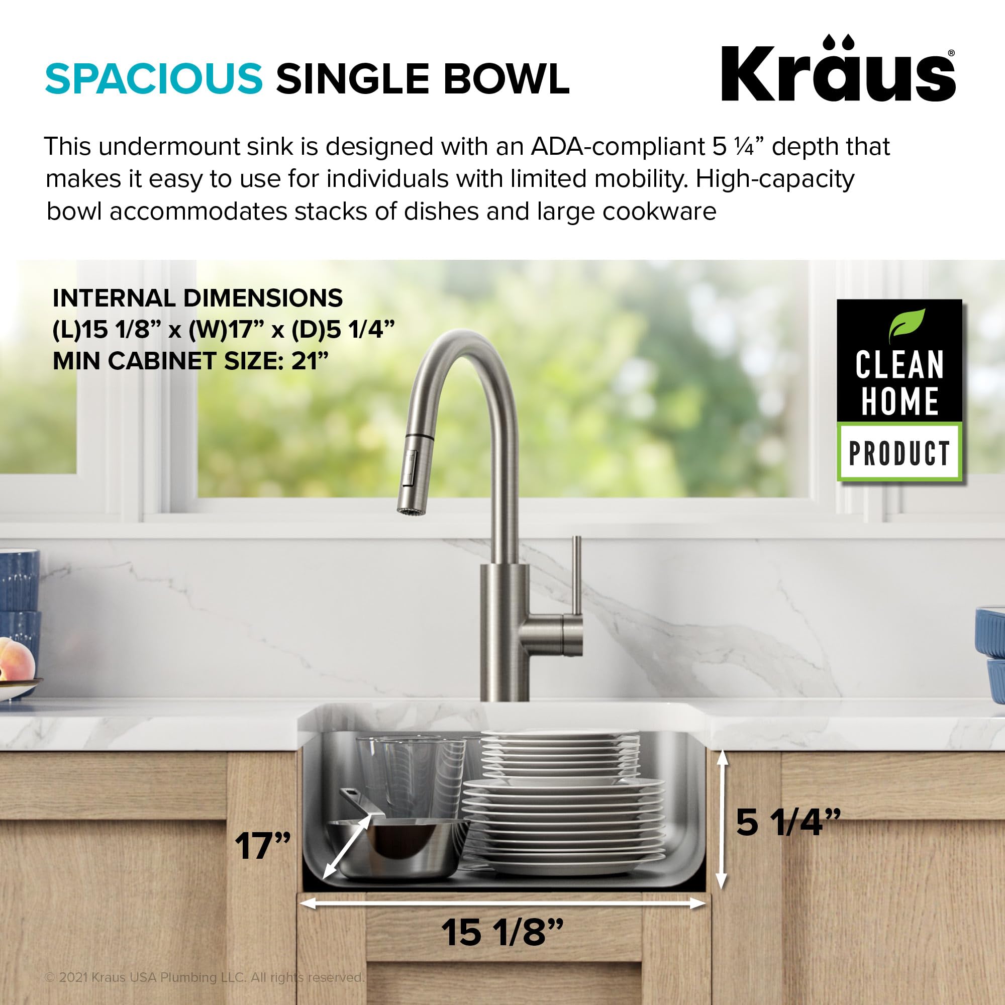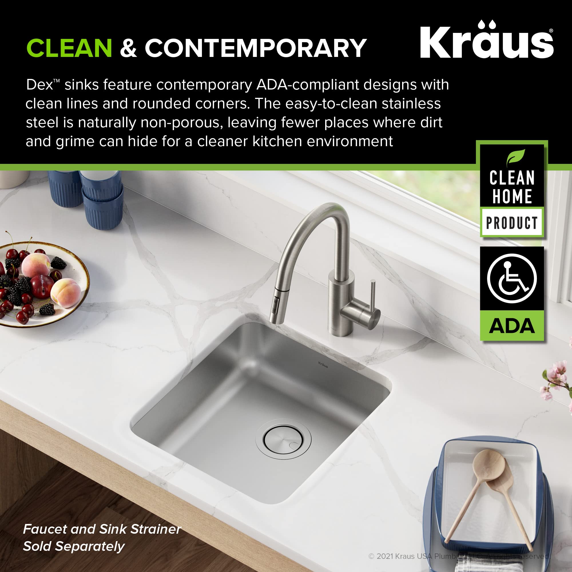 CLEAN HOME PRODUCT: Dex Series sinks feature a naturally non-porous sink surface that’s easy to clean and maintain – ADA-COMPLIANT DESIGN with 5.25-inch bowl depth is easy to use for individuals with limited mobility – CLEAN & CONTEMPORARY sink with rounded corners makes modern style possible in any kitchen