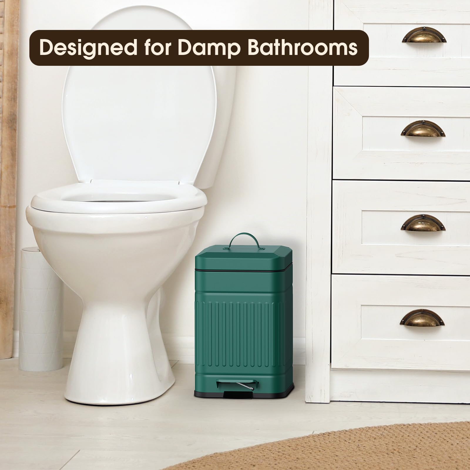 Retro Design: This Rectangular Metal trash can is the perfect vintage garbage can specially designed with an Embossed body and matte finish; Looks sophisticated and retro whether used in farmhouses, bathrooms, bedrooms, offices, toilets, dorms, etc